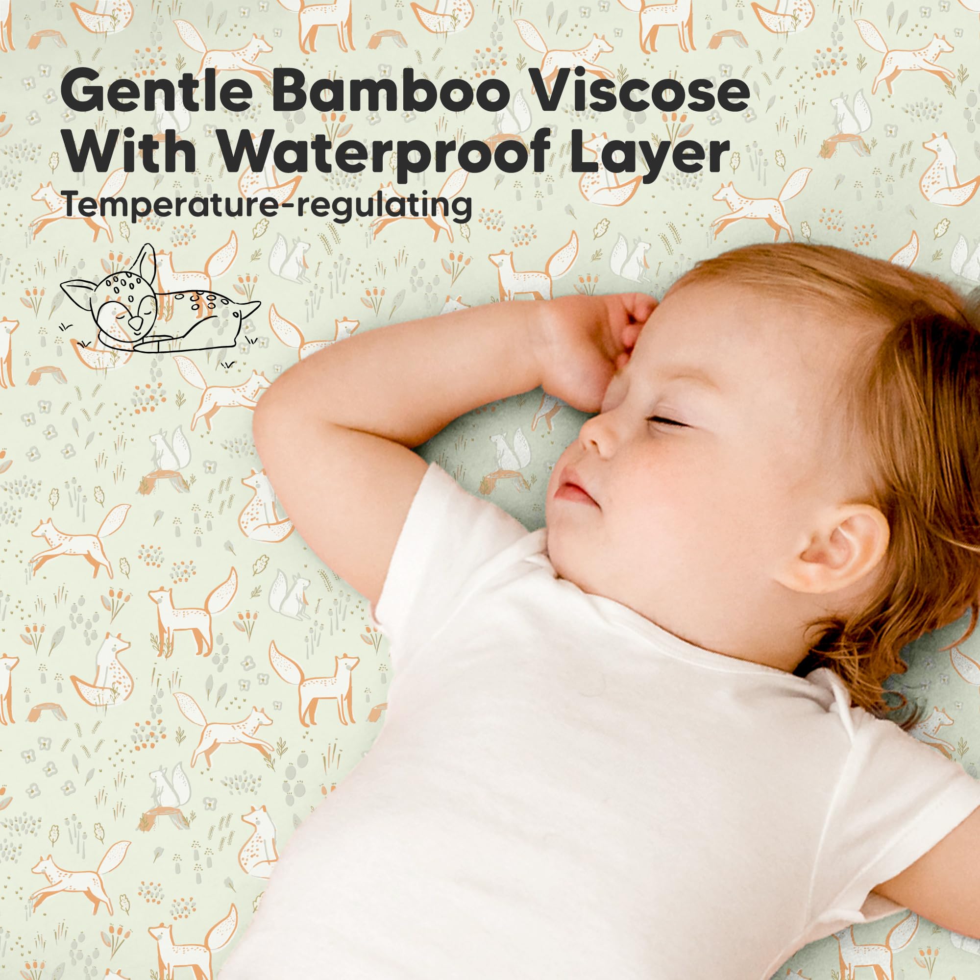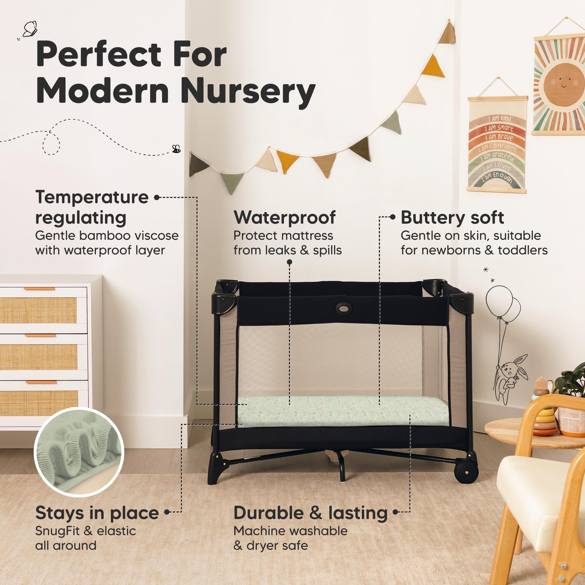 Soft & Comfortable - Made of 100% viscose derived from bamboo, the mini crib sheets ensure maximum comfort for your baby during nap time. Our mini toddler bed sheet is softer than cotton, perfect for all skin types including newborn's delicate skin.