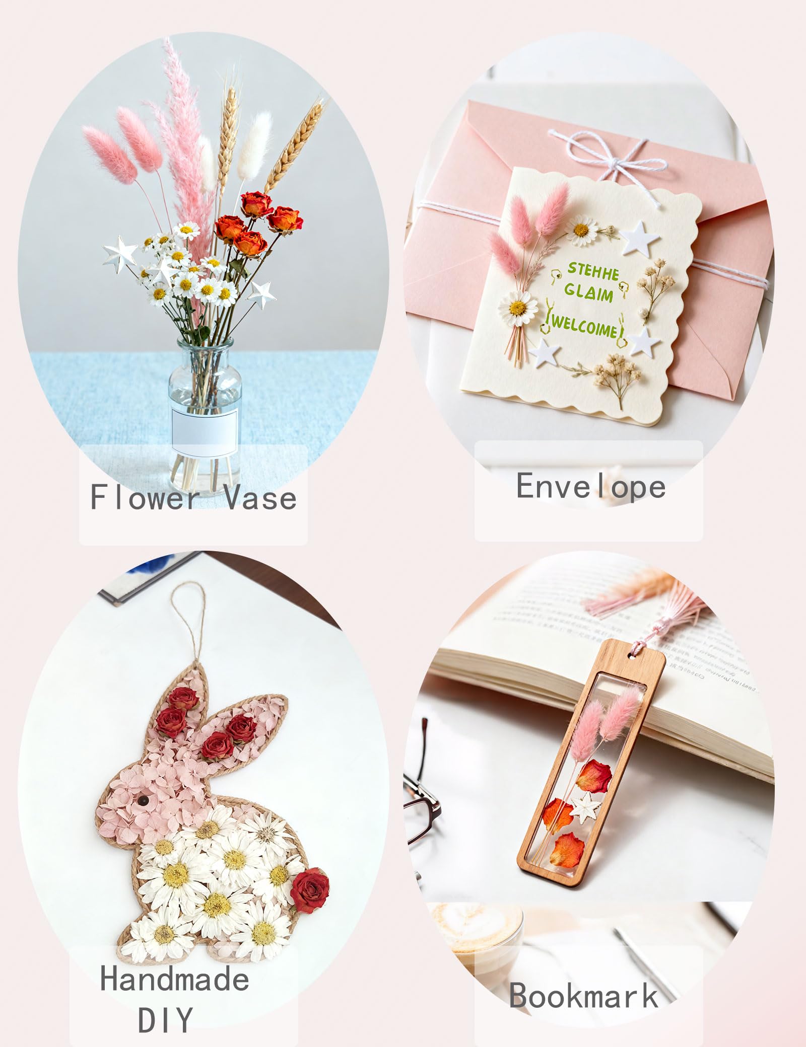 MULTIPLE USES: Suitable for all kinds of DIY projects, can be tied into dried flower bouquets, dried flower garlands, used for decorating your home, DIY wreaths, wedding decorations, flower arrangement decorations, wall decorations, invitation decorations, table decorations for special occasions (e.g. birthdays, mother's day, etc.), photoshoots, baby shower decorations, boho decorations, and also placed in vases as decorations.