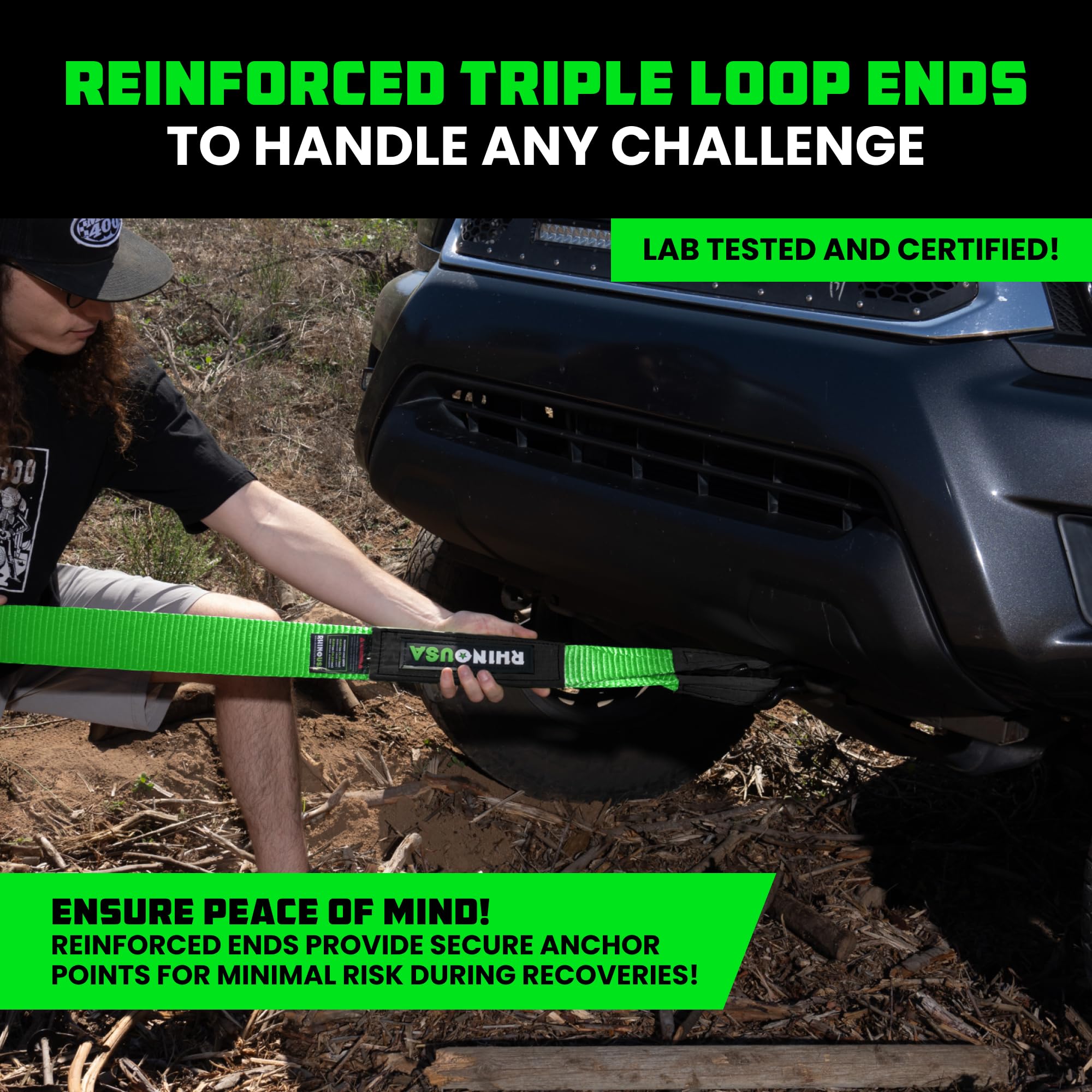 TRIPLE REINFORCED ENDS - High Tensile Loop Ends Provide Protection Against Wear and Tear, Abrasion, and Load Stress, Ensuring Durable and Secure Connection Points When Recovering