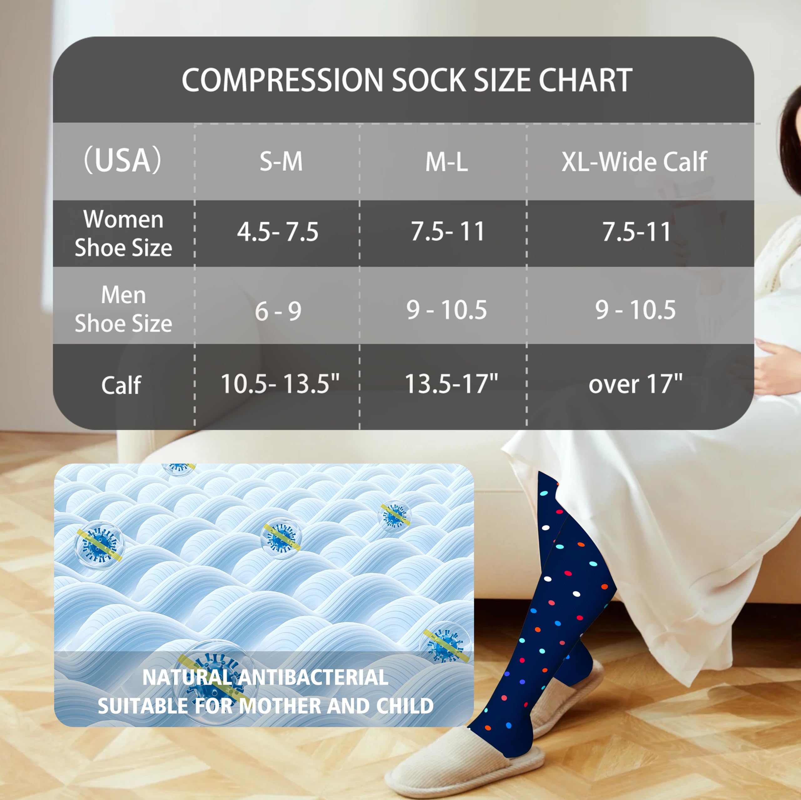 Graduated Compression Socks: Compression socks 20-30mmHg knee high provide comfortable and appropriate pressure from the ankle to the calf, effectively promoting blood circulation in the legs, caring for your leg health, and keeping you comfortable all day long.