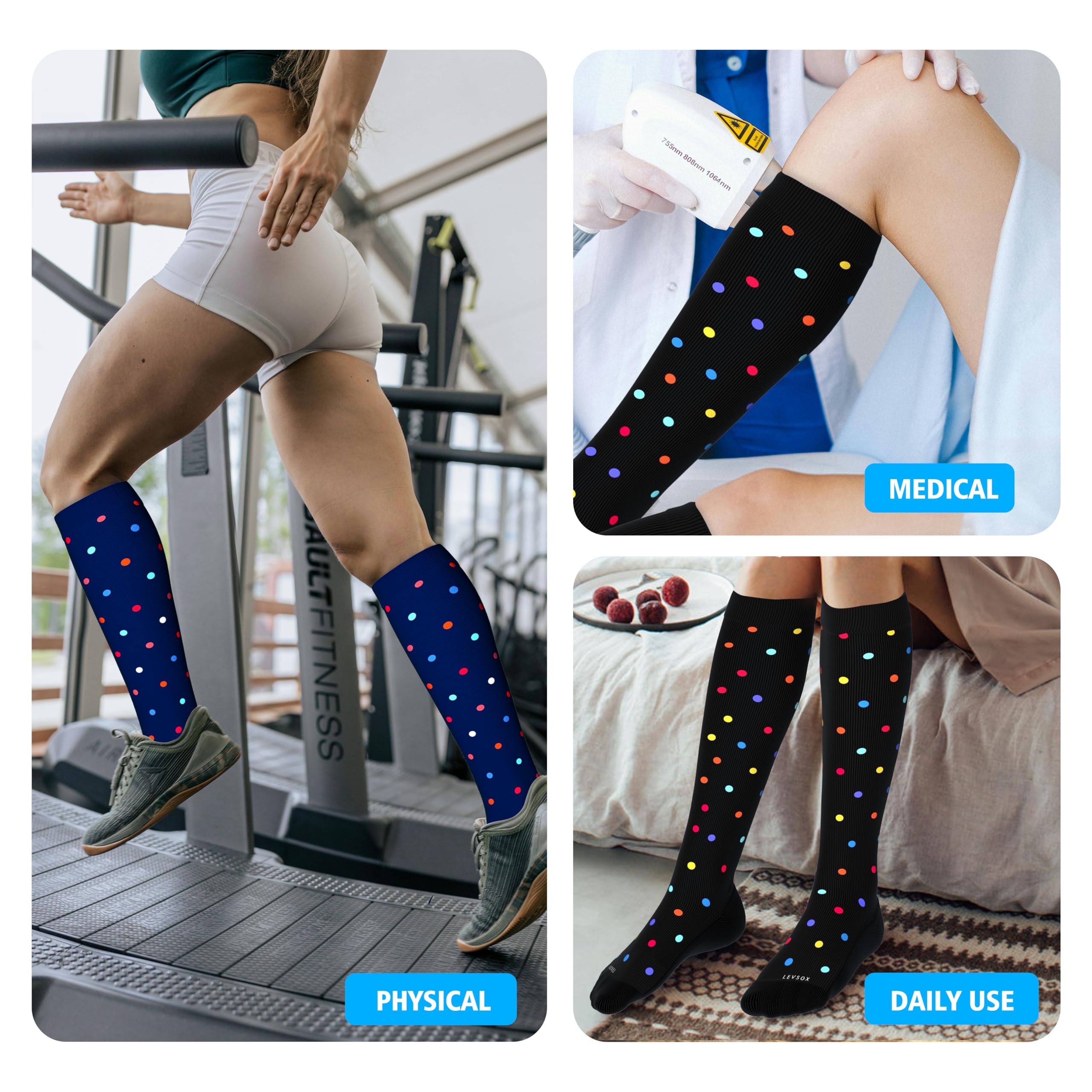 Best Compression Socks: Ladies cotton compression socks women are skin-friendly and comfortable, easy to put on and take off. Packaged in pairs, cute fun compression socks very practical and ideal for gifting to your lover, family, friends, pregnant women, nurses, etc. They provide the perfect solution for people who sit for long periods during travel or work.