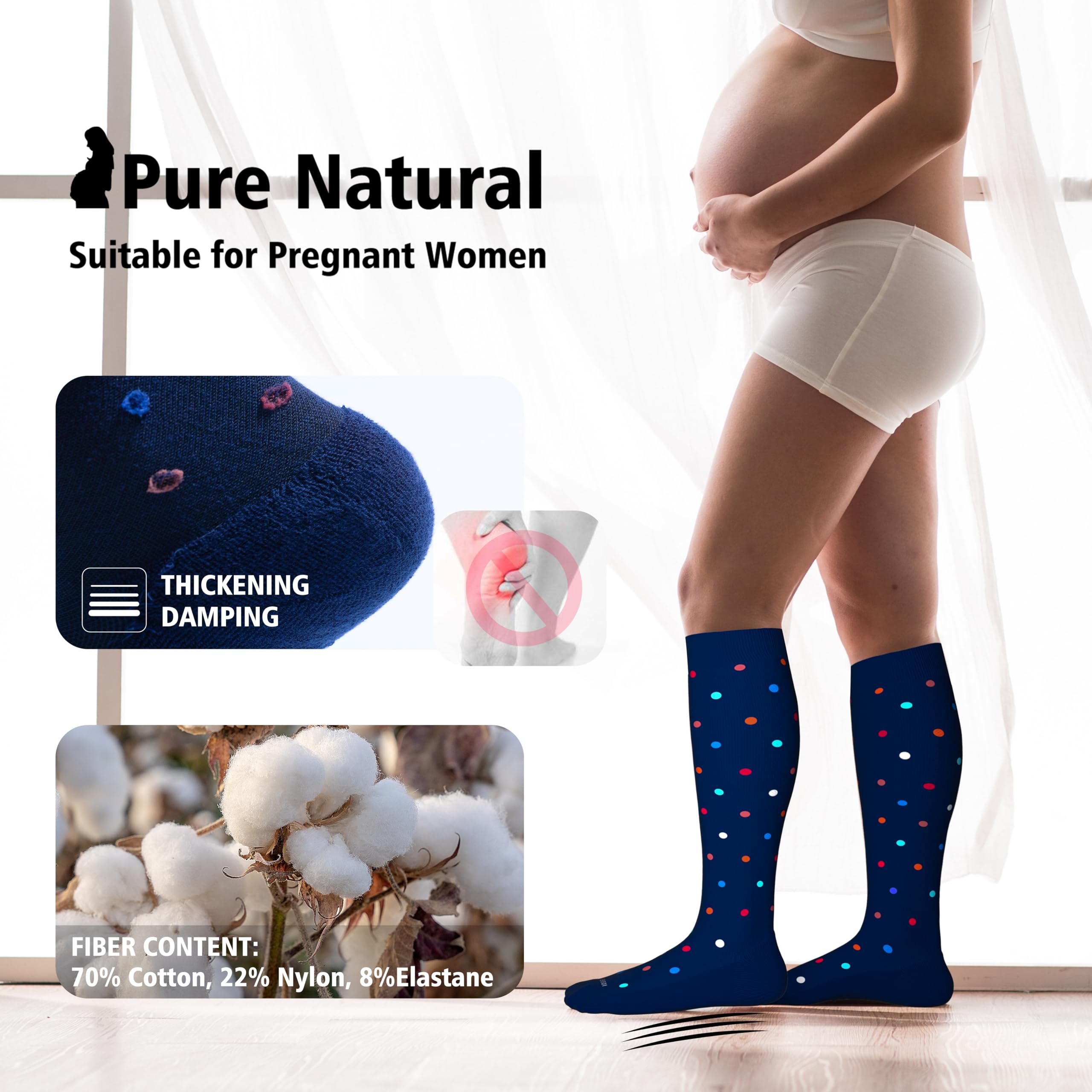 Multifunctional Compression Socks: Compression socks for pregnancy&nurses effectively address leg-related issues, prevent blood clots and alleviate fatigue, ease swelling and pain during pregnancy, and provide support to eliminate fatigue and boost leg vitality. They are suitable for nurses, pregnant women, those with long shifts, travel and flight.