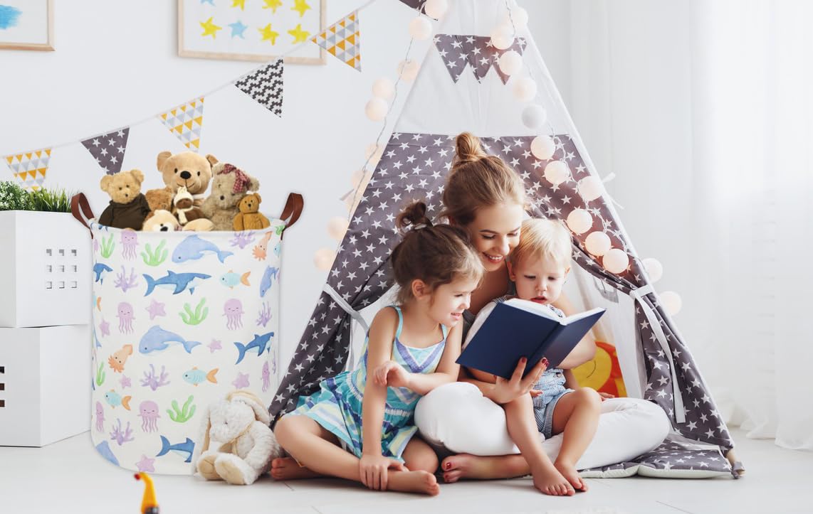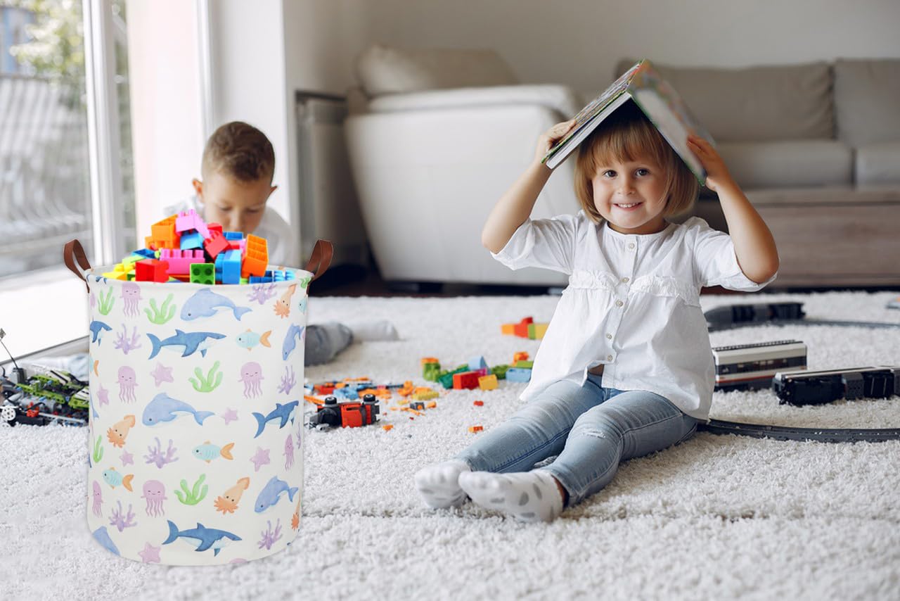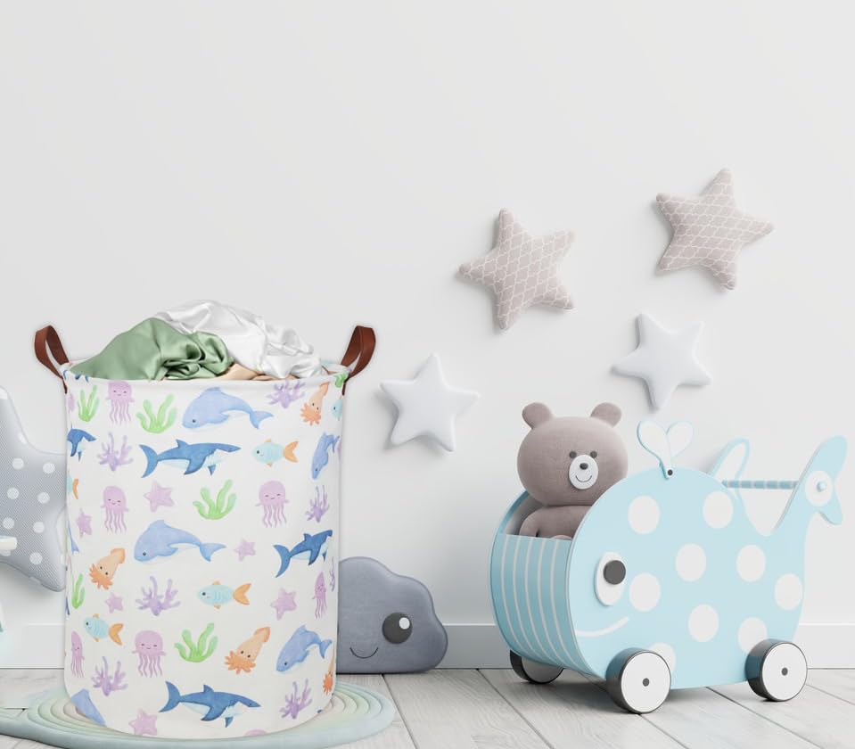 ESSME Kids Laundry Hamper,Shark Hamper Collapsible Canvas Waterproof Ocean Storage Bin for Boy, Nursery Hamper,Gift Baskets,toy bins(Ocean)