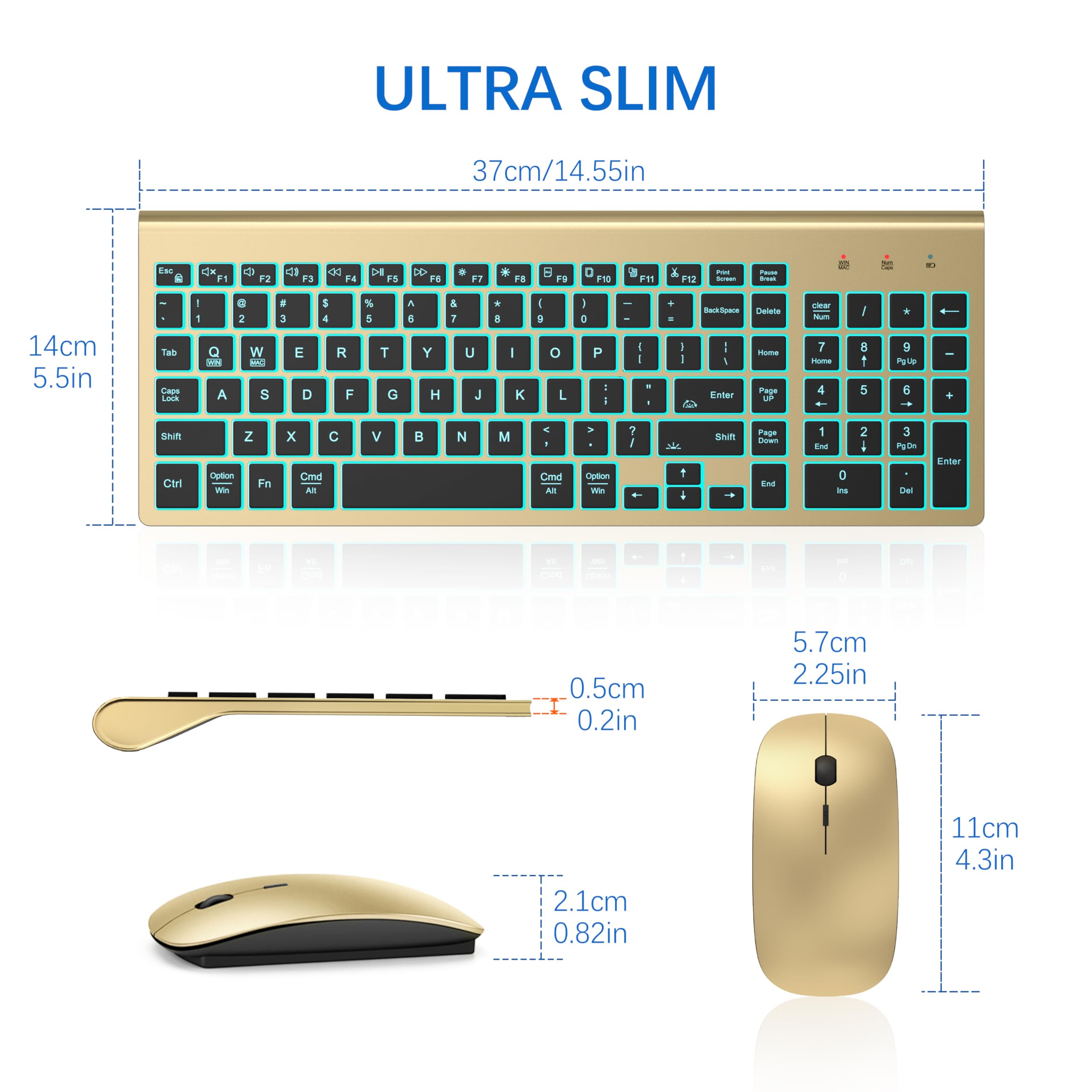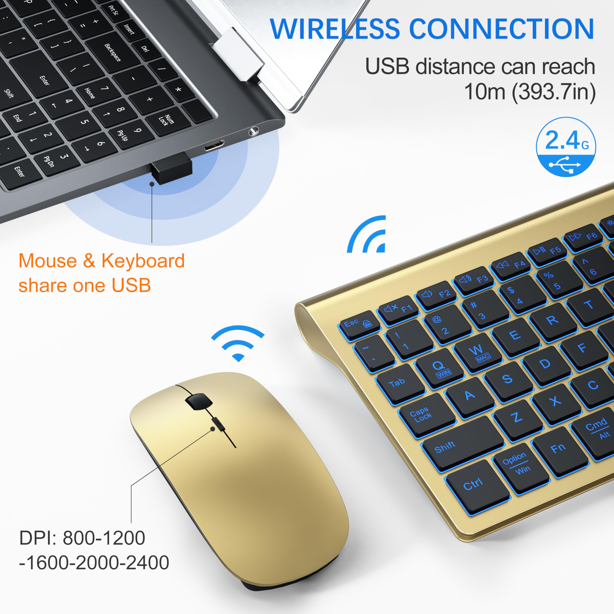 [ Dual-System Layout & Wide Compatibility] This backlit keyboard wireless supports dual-system layouts: press FN+Q for Windows mode and FN+W for Mac mode. It retains the numeric keypad and features 12 function keys for quick access to music, volume, email, and more. The cordless keyboard combo works perfectly with devices that have a USB port or Type-C interface, including PCs, laptops, MacBooks, desktops, Chromebooks, and Smart TVs.