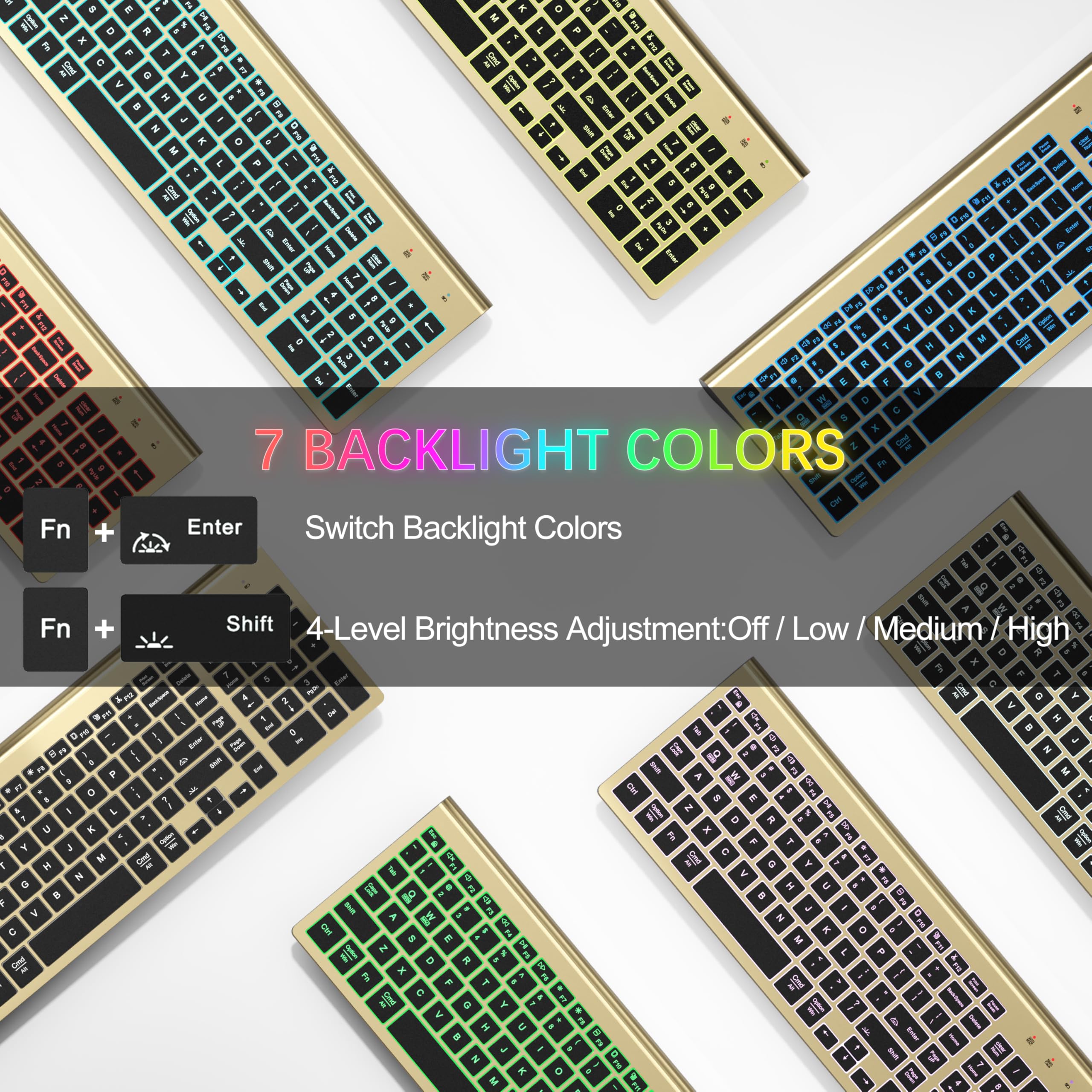 [7-Color Backlight & Stable 2.4G Wireless] This wireless keyboard features 7 switchable backlighting effects with Off / Low / Medium / High brightness levels, allowing you to easily customize the lighting to suit your needs. Illuminated keys enable efficient work even in low light, while the lighting effects help enhance your working atmosphere. The keyboard mouse set ensures a stable wireless connection up to 10 meters. with one shared Nano receiver and a Type-C adapter for instant plug-and-play.