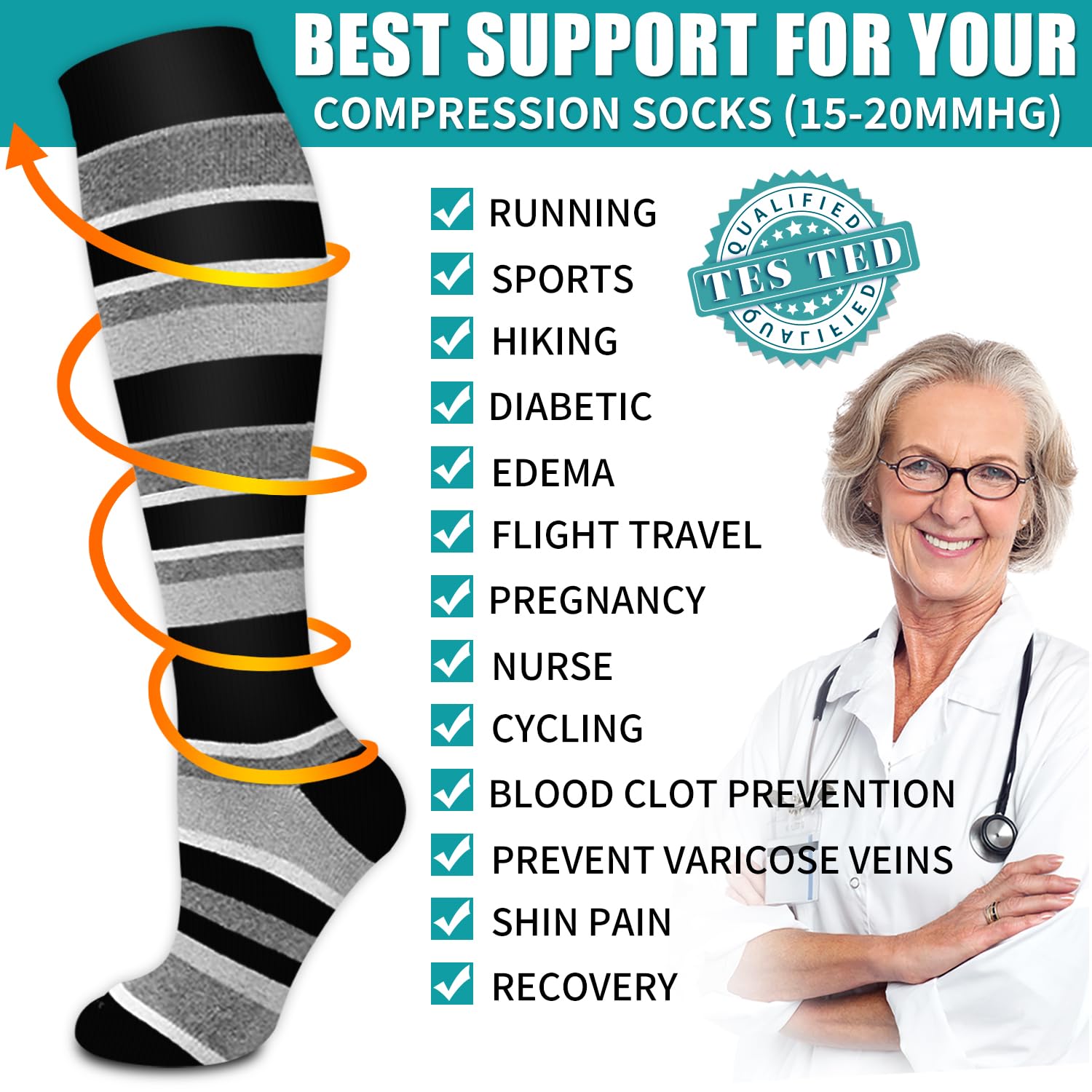 UPGRADE YOUR COMPRESSION SOCKS DRAWER! - With all the tasks of work and family (and of life itself!) we may forget to pay attention to and maintain the health of our legs. Our compression socks are designed to help increase circulation, improve leg and foot comfort, and reduce soreness and swelling, increase energy, All day comfort.Great for long periods of sitting or standing, endurance sports, flying and travel, post-workout recovery, pregnancy, and spider & varicose veins.