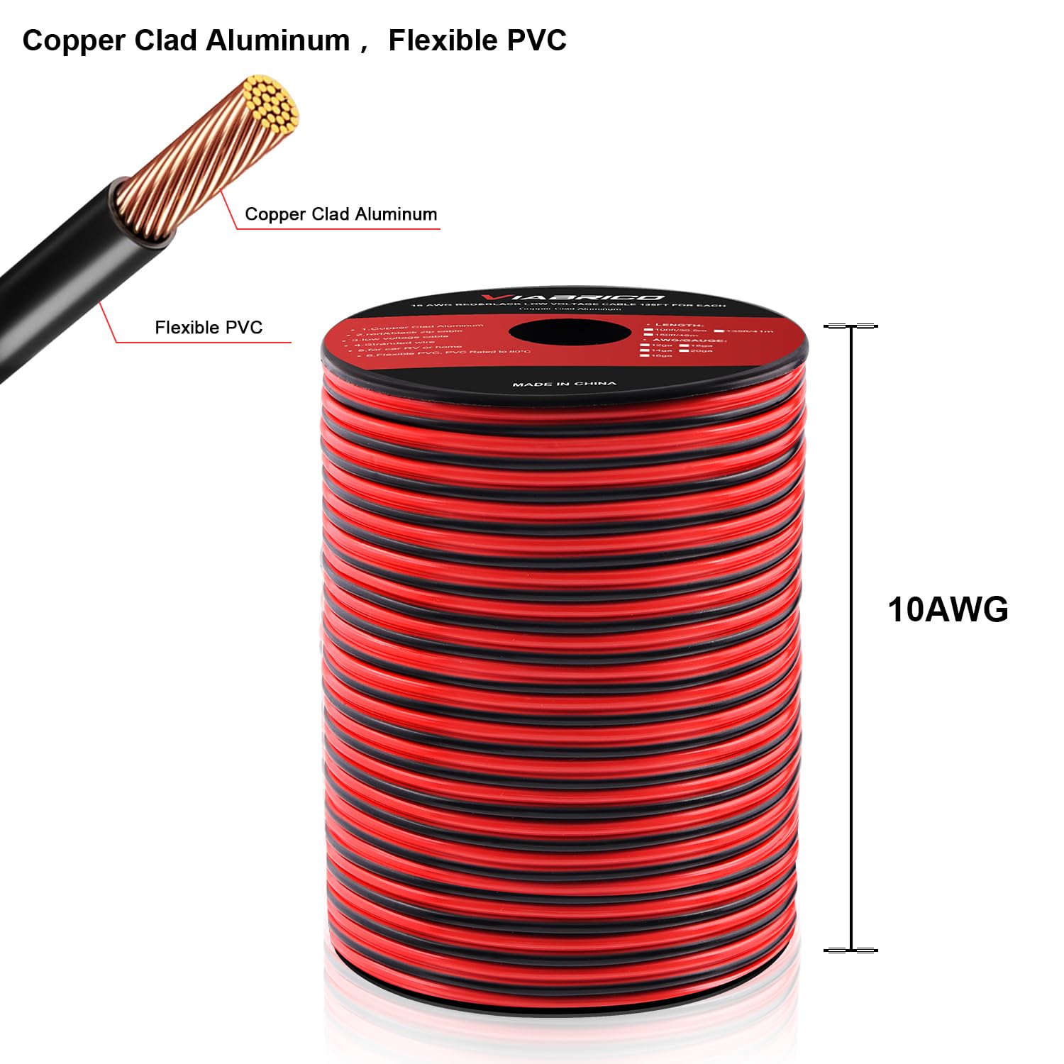 VIABRICO Low Voltage Wire : 10/2 gauge black and red speaker wire is ideal for low voltage applications such as 12V/24V DC circuit connections, home or car speakers, home appliances, single color LED light strip, lamps, automotive, boat ect.