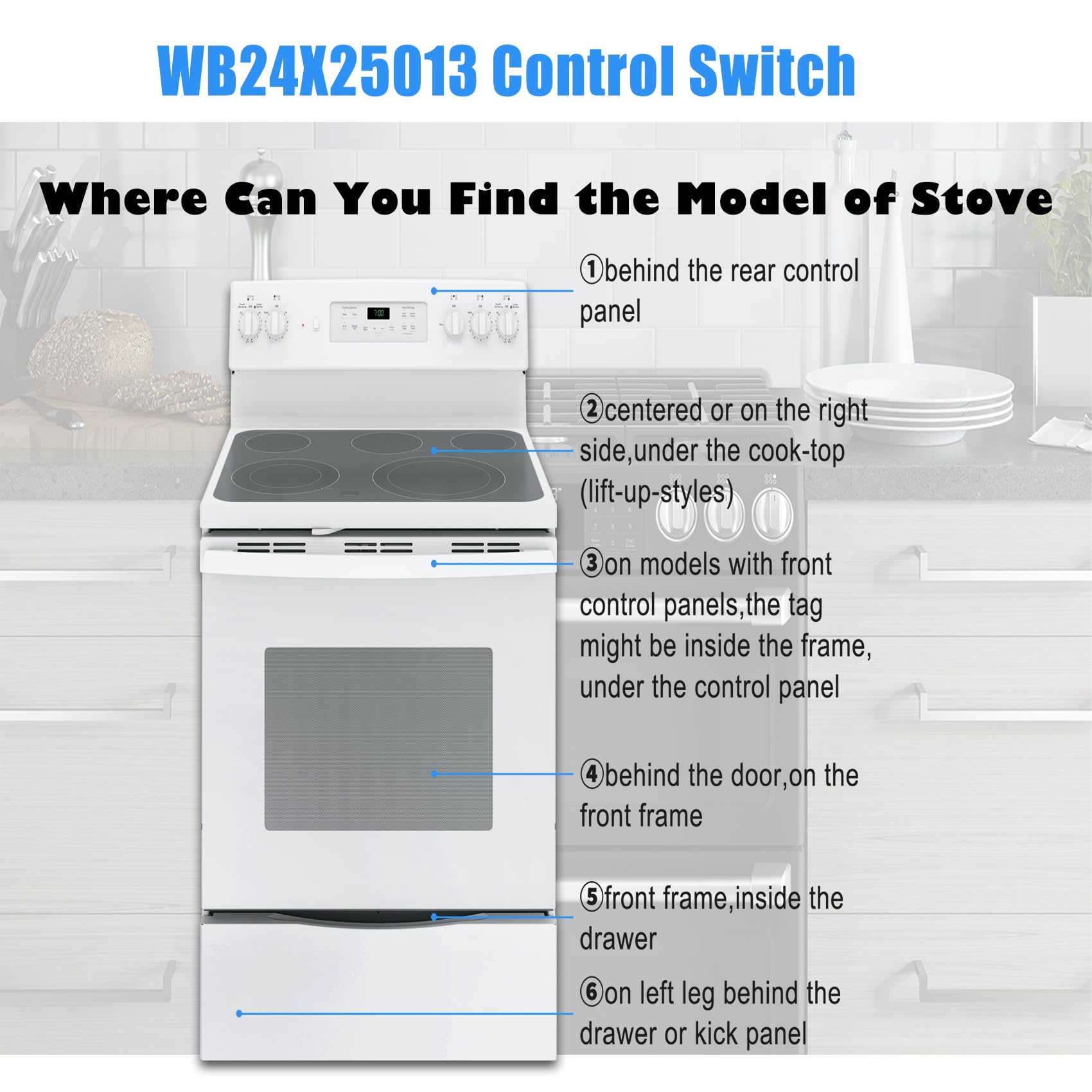 [ Buying Guide ] Please double check whether the WB24X25013 infinite switch model you choose is suitable for GE range,fits models: JB6, JB7, JB8, JBS, JS6. If you are not sure whether the Wb24x25013 infinite switch control is suitable, you can refer to the adaptation model picture below.