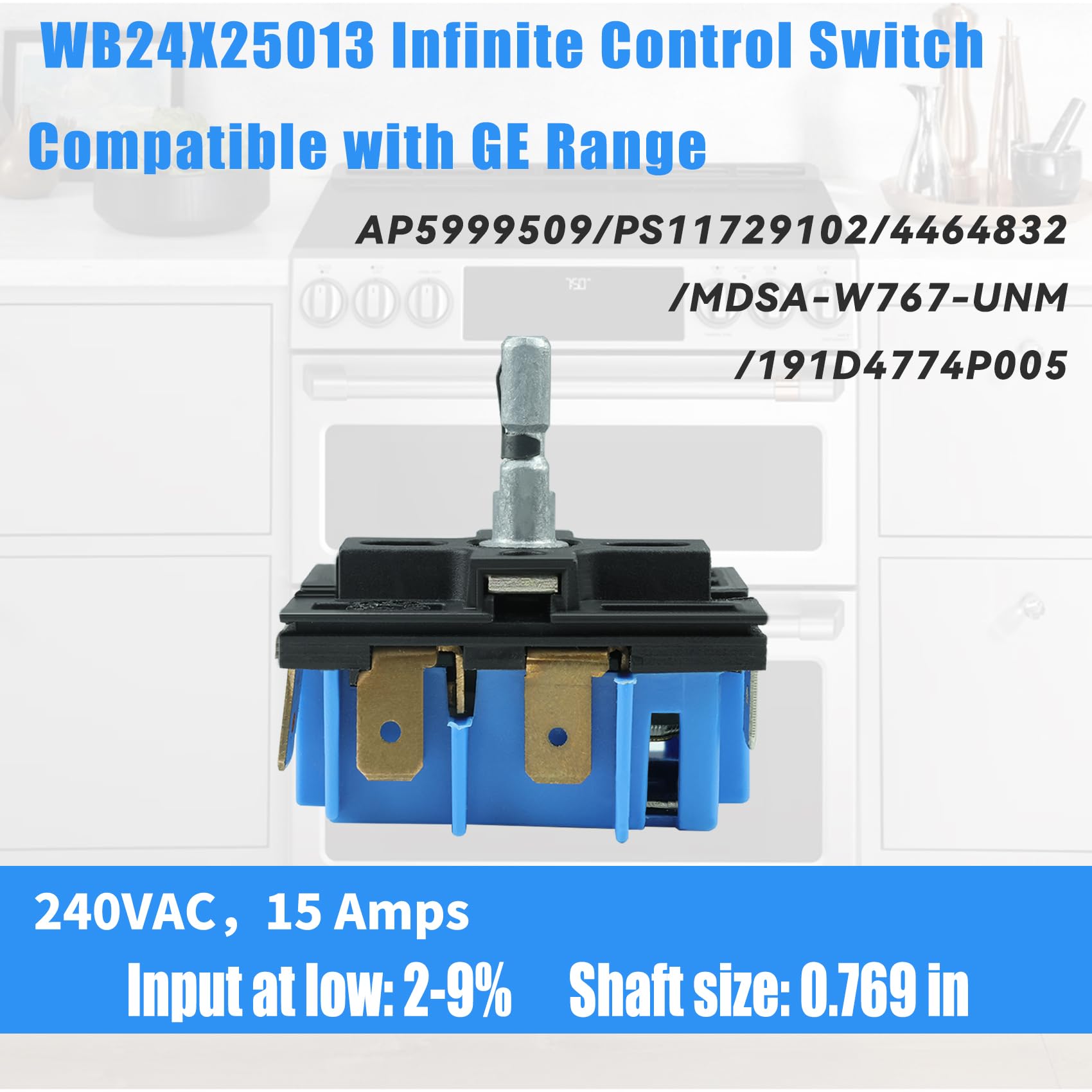 [ Premium Construction ] 240V, 15 Amps, low voltage input, 0.769 axis size; Wb24x25013 infinite control switch manufactured with premium materials for durability and exact fit, with no rust on the metal surface and precise dimensions.