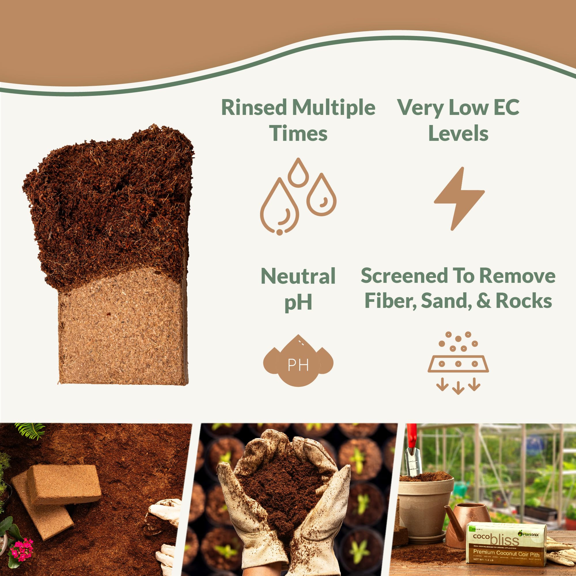Coco Coir 650gm Bricks (Pack of 2) - Coco coir is a 100% organic and renewable soil amendment that works as a growing medium for succulents, herb planters, seedlings, vegetables, flowers, indoor house plants, indoor gardens, and more. Unlike peat moss, coco coir is 100% natural and doesn’t contribute to the destruction of natural wetlands.