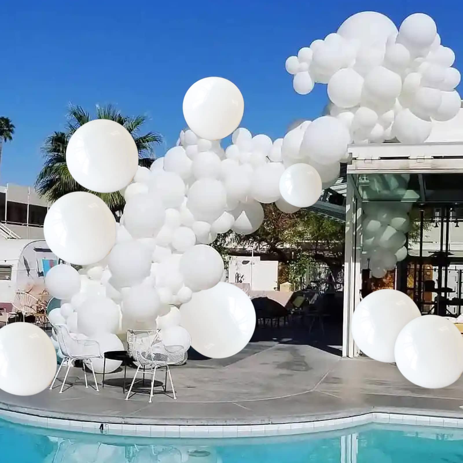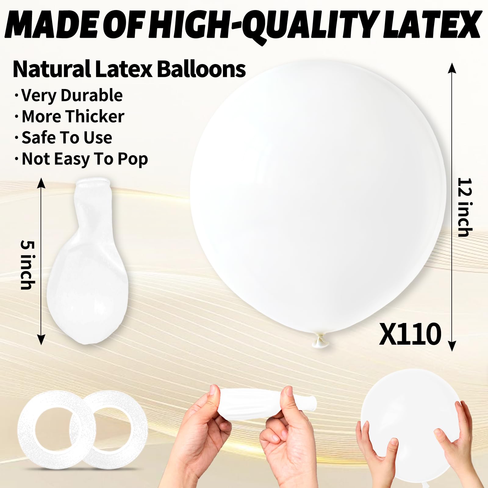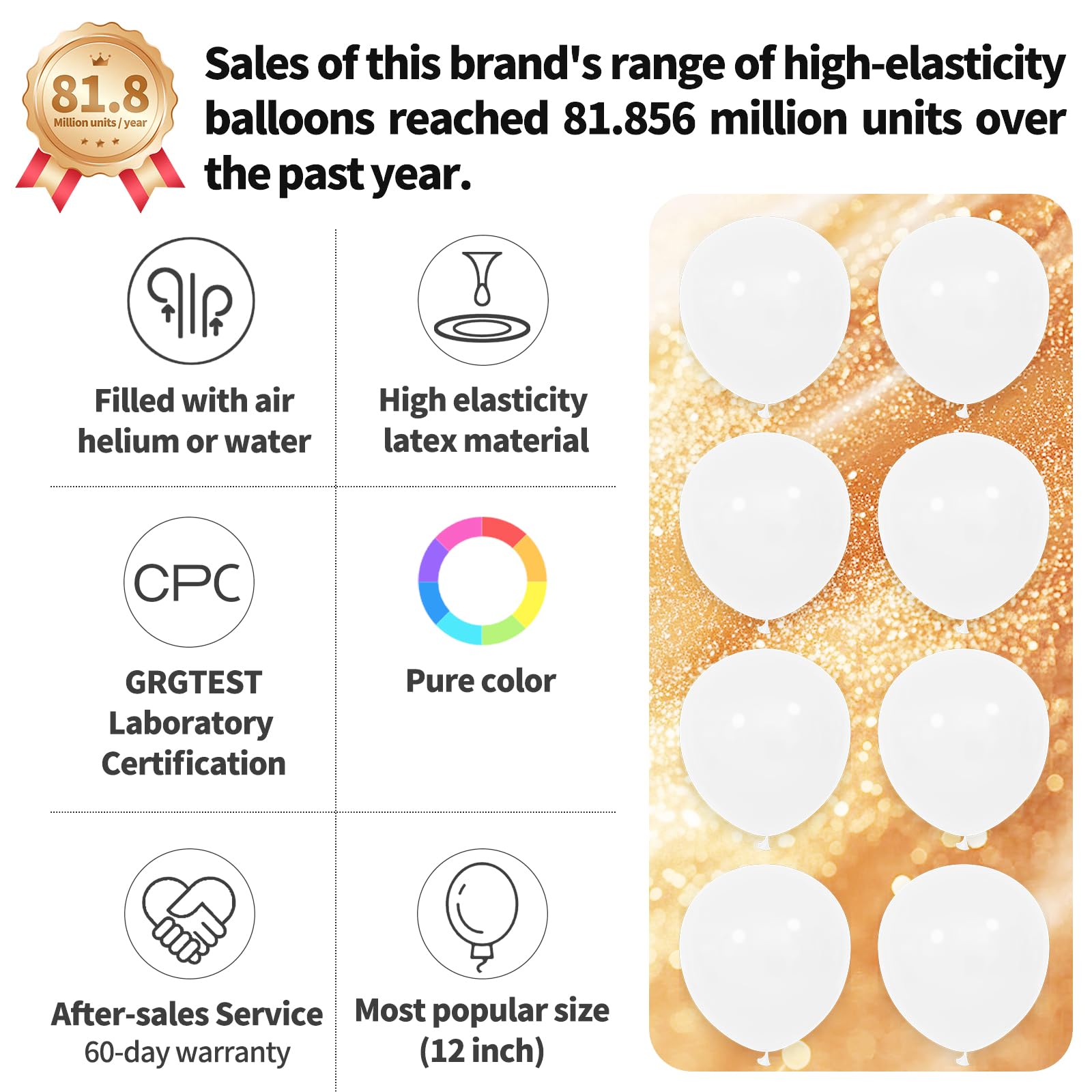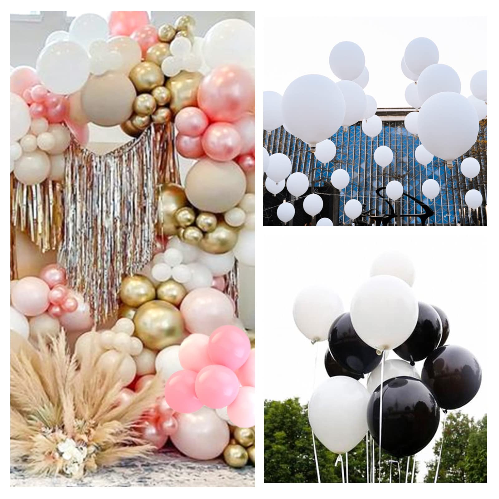 The 12 inch white Latex Party Balloons included in the package can make your Party Decoration such as Birthday Party, Baby Shower,Wedding, Halloween or Christmas Party, etc. have enough white Balloons to decorate.