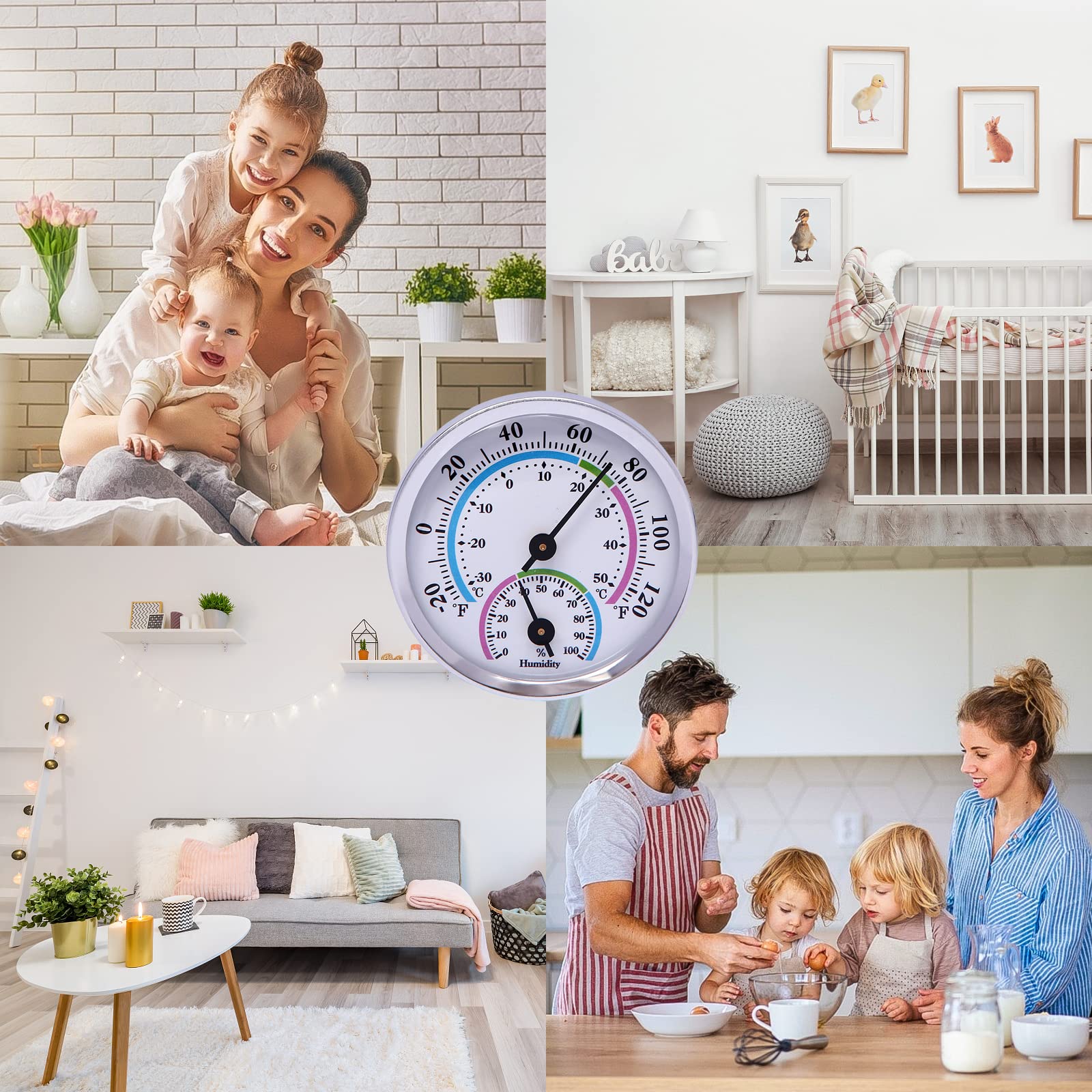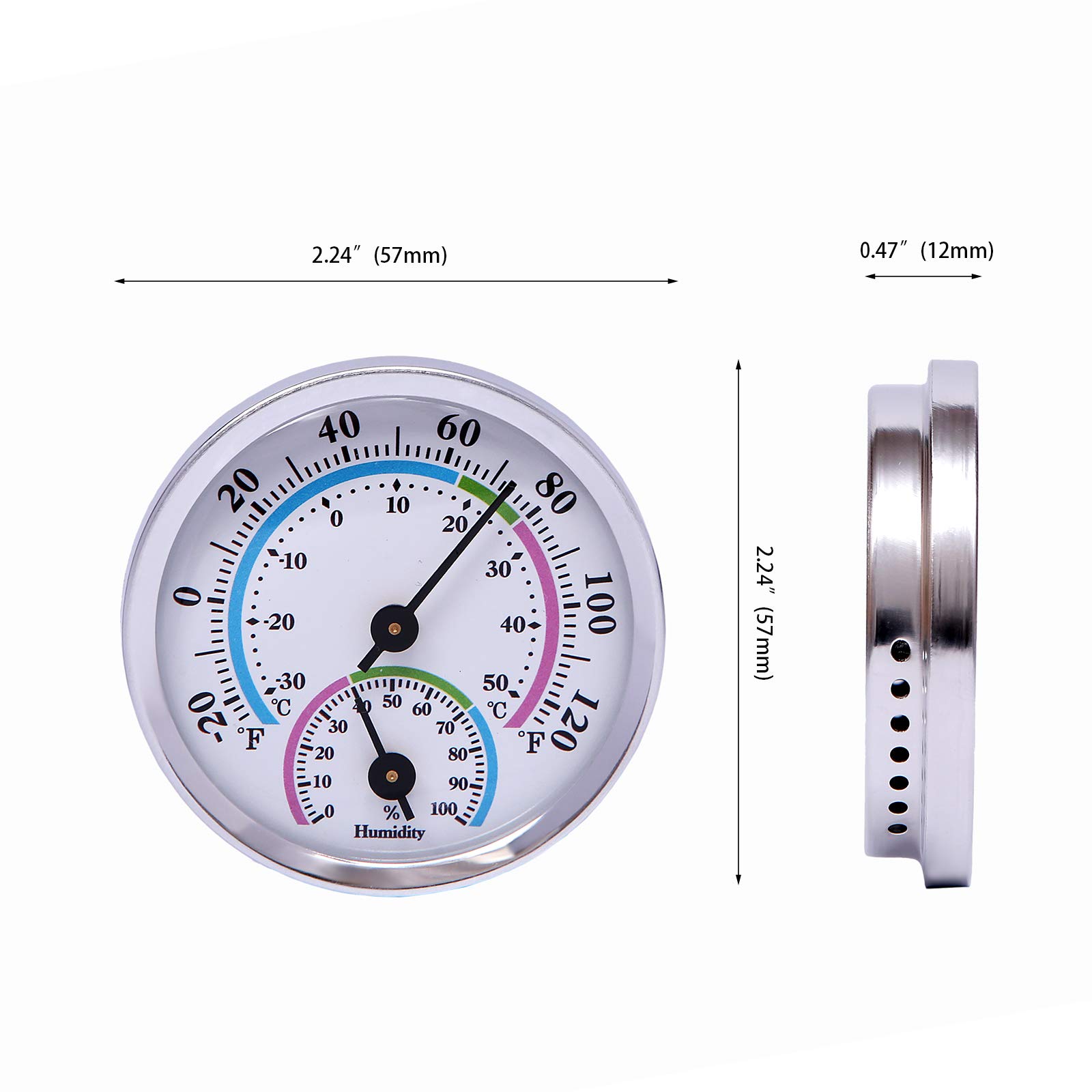 【EASY TO READ】 The Humidity Gauge is handcrafted from solid aluminum alloy with fine and clear dial, easy to read the scale. It is easily readable from a distance because of the large display. The temperature shows both °C and °F readings.