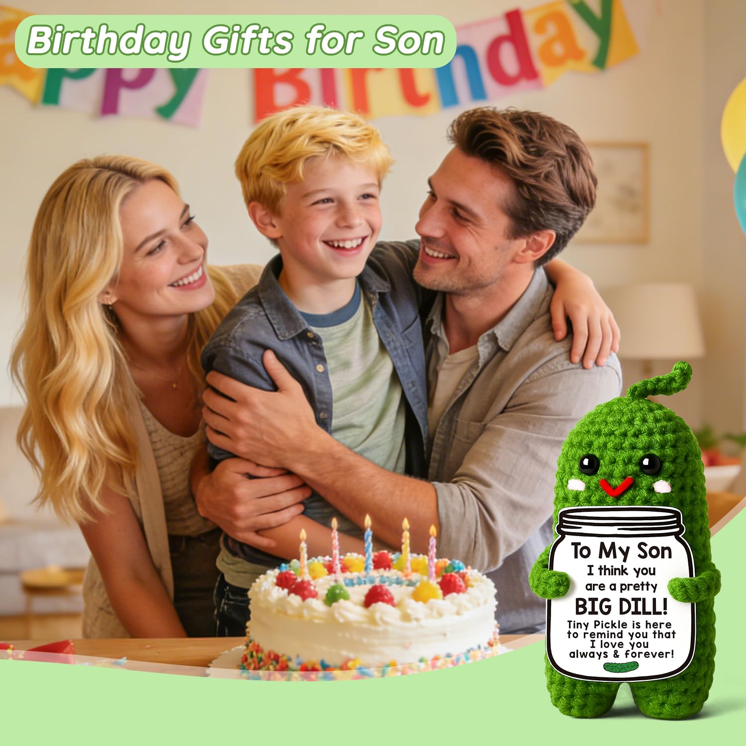 Son Gifts from Mom - Made from soft, high-quality yarn, this Emotional pickle is meticulously crocheted to create a gift that’s unique, heartfelt, and durable. An ideal gift for son from mom that combines humor and love in one delightful package