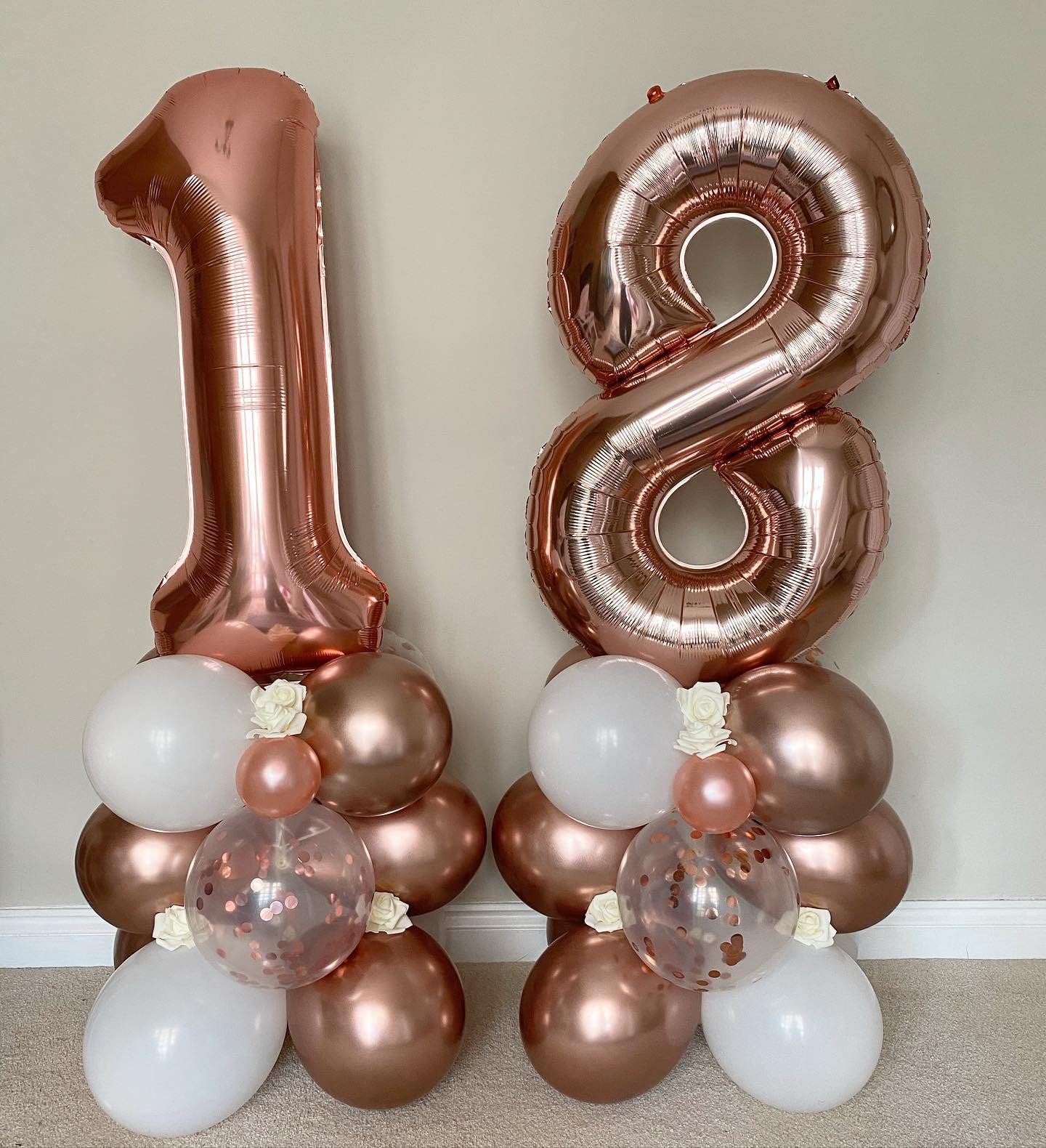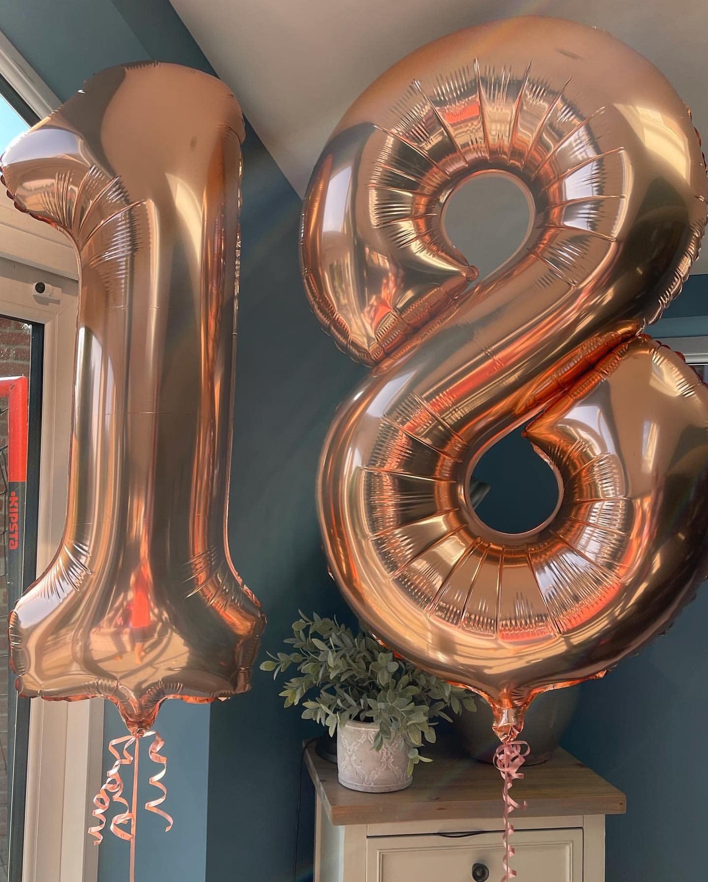 Color:Rose Gold Packaged included:1 piece 40 inch Rose Gold Number 1 and 8 balloon,1 straw to inflate. Rose Gold 18 number foil balloons are the best for 18th birthday party, 18th wedding celebration, anniversary, ceremories celebration, business or big events party.18 Numbers balloons are perfect for birthday or anniversary party decorations. The jumbo design makes it wonderful backdrop in any occasions.Not only can create happy feelings for the party, but also allow you to take memorable pictures.You can DIY with other latex or foil balloons,makes your party more charming and impressive How to use:you can stick rose gold 18 number balloons on the wall, window or door, you can inflate with both helium or air, you can even place them on the bed, floor or table, provide your party or home a good decoration.