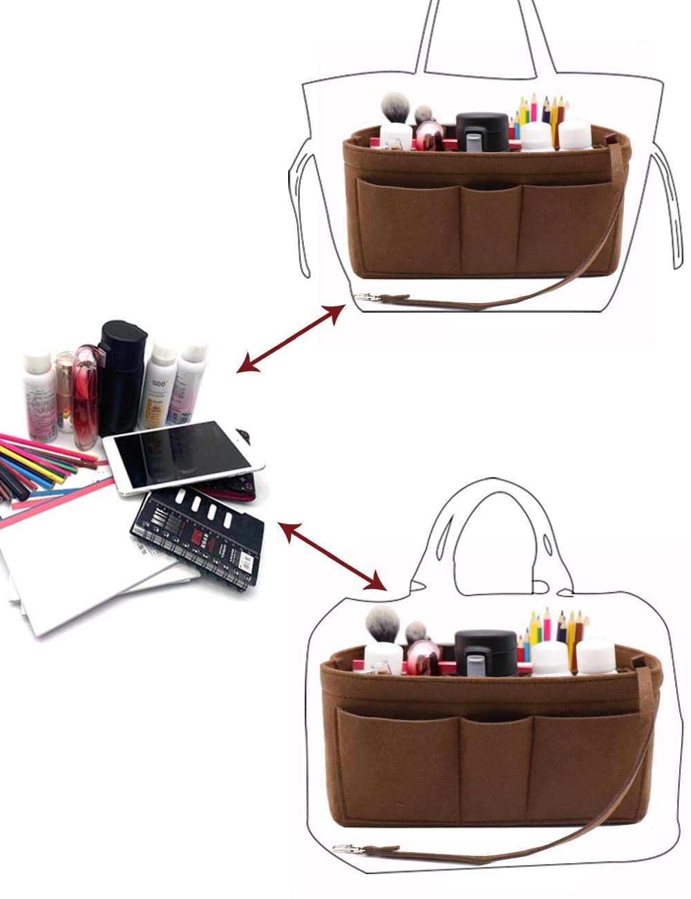 LIGHTWEIGHT & DURABLE---Strudy but Very Lightweight,Structured organizer bag in bag, Thick felt fabric better protect your items inside handbag.Fits for a variety of models handbags,Keep your Handbag shape and shipshape.