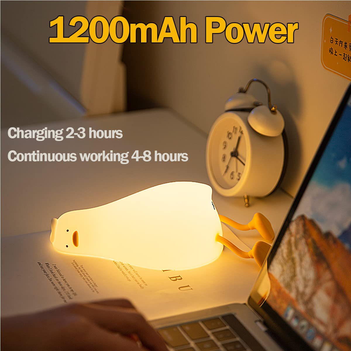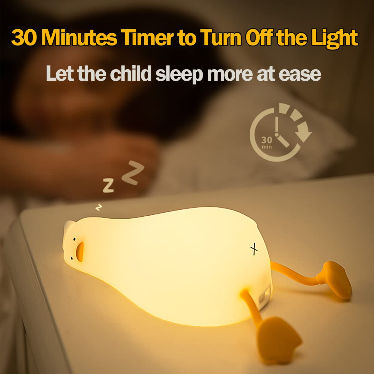 【3 Different Modes】 The cute ducky light has 3 light-up modes, mode 1: tapping can cycle to adjust the brightness, will not automatically turn off the lights; mode 2: tapping cycle to adjust the brightness, 30 minutes lights automatically turn off the lights; mode 3: always 50% brightness; accompany the whole night, so that children are no longer afraid of the dark before bed.