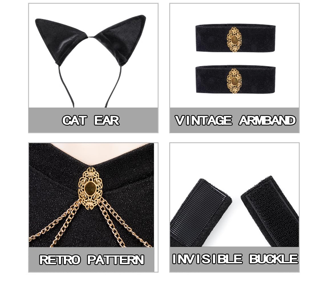 Package includes:Cat's ears headband+bra+skirt+tail+armband;