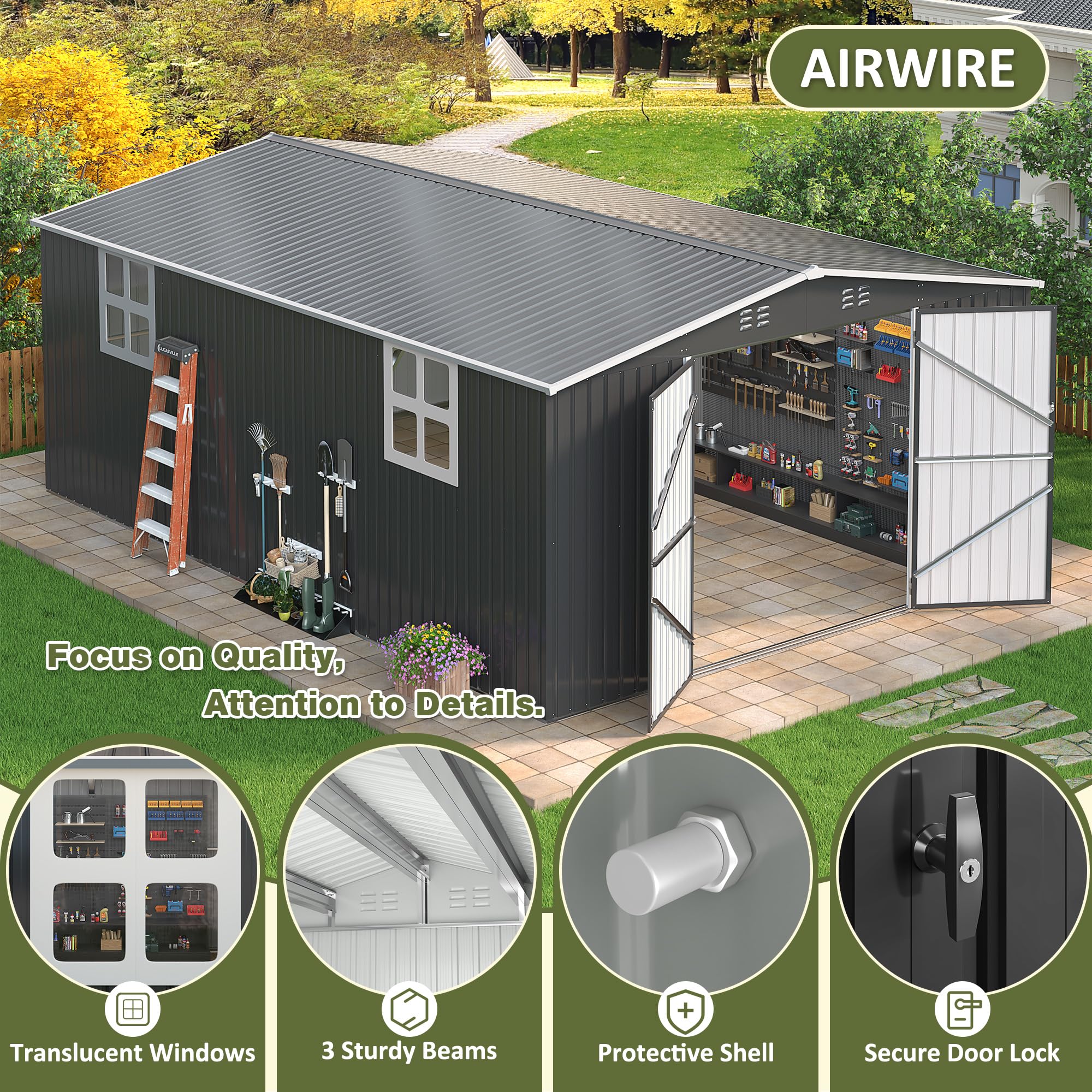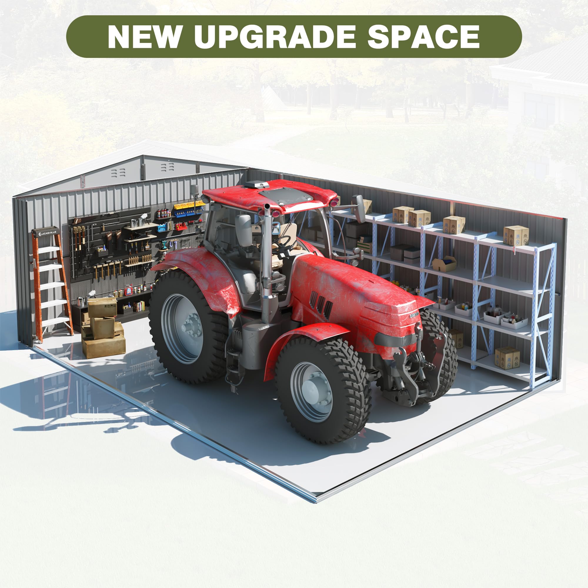 VERSATILE USAGE: More than a metal shed, effortlessly transforms into a workshop, equipment storage room, or compact garage to meet diverse storage and project needs.