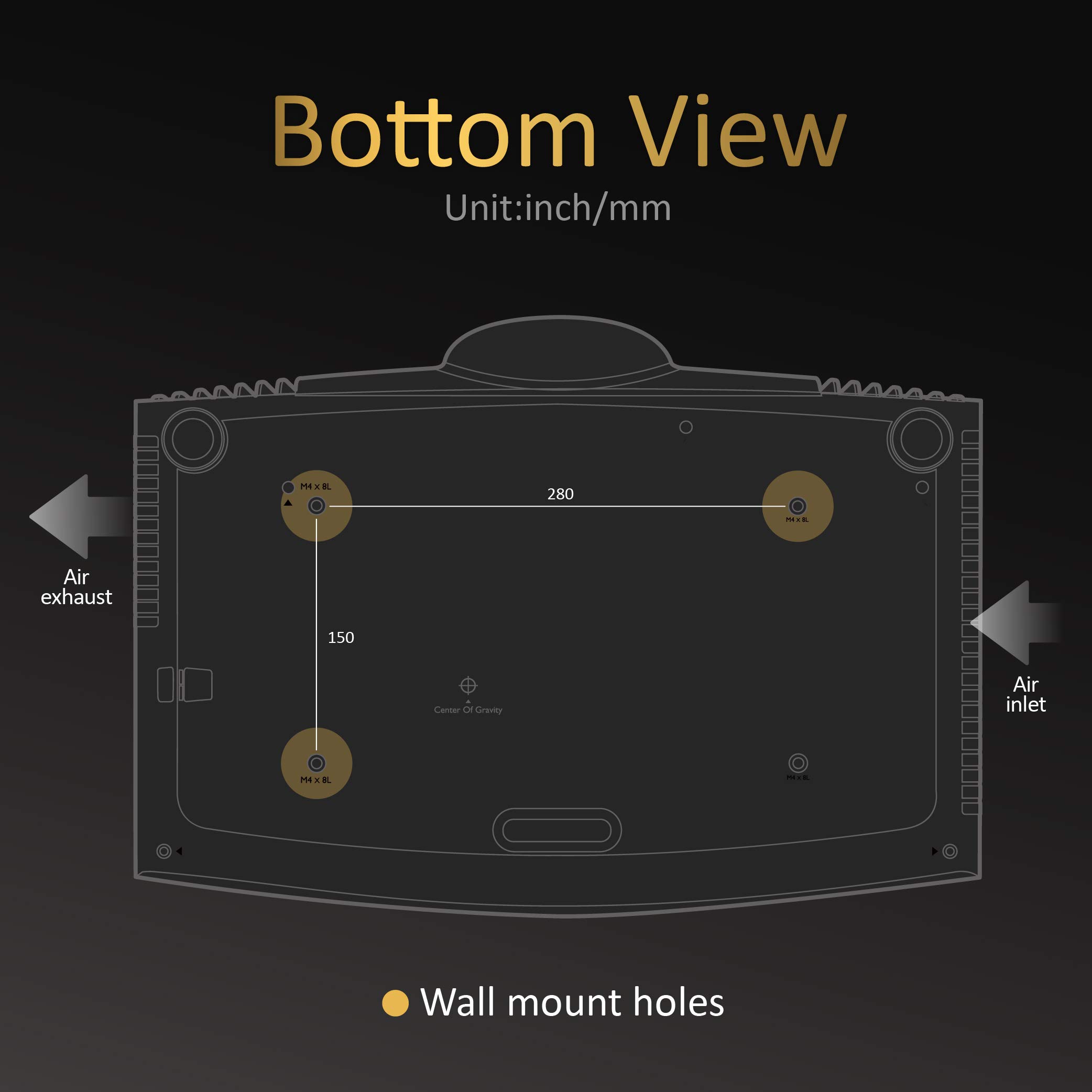 Main SpecificationsResolution - 4K UHD (3840 x 2160)Brightness (ANSI lumens) - 1800 ANSI LumensContrast Ratio (FOFO) - 100,000:1 (w/ Dynamic Iris)All SpecificationsDisplayProjection System - DLPResolution - 4K UHD (3840 x 2160)Resolution Support - VGA (640 x 480) to 4K UHD (3840 x 2160)Brightness (ANSI lumens) - 1800 ANSI LumensContrast Ratio (FOFO) - 100,000:1 (w/ Dynamic Iris)Display Color - 30 Bits (1.07 billion colors)Native Aspect Ratio - Native 16:9 (3 aspect ratio selectable)Light Source - LampLight Source Wattage - 245WLight Source Life - Normal 4,000 hr, Economic 10,000 hrs, SmartEco 10,000 hrsOpticalThrow Ratio - 1.36 2.18 (100" @ 3 m)Zoom Ratio - 1.6XLens - F/# 1.81 2.1, f 14.3(Wide) 22.9(Tele)Lens Shift - Vertical: ± 60% / Horizontal: ± 23%Keystone Adjustment - 1D, Vertical ± 40 degreesImage Size - 60" 200" / 300" (Clear Focus / Maximum)Horizontal Frequency - 15K-102KHzVertical Scan Rate - 23-120HzPicturePicture Mode - ISF Disabled: Bright / Vivid / Cinema (Rec. 709) / D. Cinema / Silence / 3D / User 1 / HDR / HLG ISF Enabled: Bright / Vivid / Cinema (Rec. 709) / D. Cinema/ Silence / ISF Night / ISF DayColor Wheel Segment - 6-Segment (RGBRGB)Color Wheel Speed - 2D: 96Hz ; 100Hz ; 120Hz 3D: 120HzRec.709 Coverage - 100%DCI-P3 Coverage - 100%InterfaceHDMI - x2 (HDMI 2.0b & HDCP 2.2)USB Type A - x1 (5V/2.5A power supply)x1 (USB 2.0 Media Reader/ Firmware upgrade)x1 (USB 3.0 Media Reader/ Firmware upgrade)USB Type mini B - x1 Firmware upgradeAudio out (3.5mm Mini Jack) - x1 Audio out (S/PDIF) - x1 (Only support 2-channel audio)LAN (RJ45) - x1 RJ-45 LAN input jack (10/100M)RS232 (DB-9pin) - x1 RS232 In (D-sub 9pin, male)DC 12V Trigger (3.5mm Jack) - x1 (3.5mm Jack)IR Receiver - x2 (Front/Top)Wired Remote in (3.5mm Mini Jack) - x1Special FeatureHDR - Yes (HDR10, HLG)Motion Enhancer (MEMC) - YesISF Night/ Day - YesLAN control - YesCinemaMaster Video - Yes (4K Motion Enhancer, 4K Pixel Enhancer, Color Enhancer, Flesh Tone).