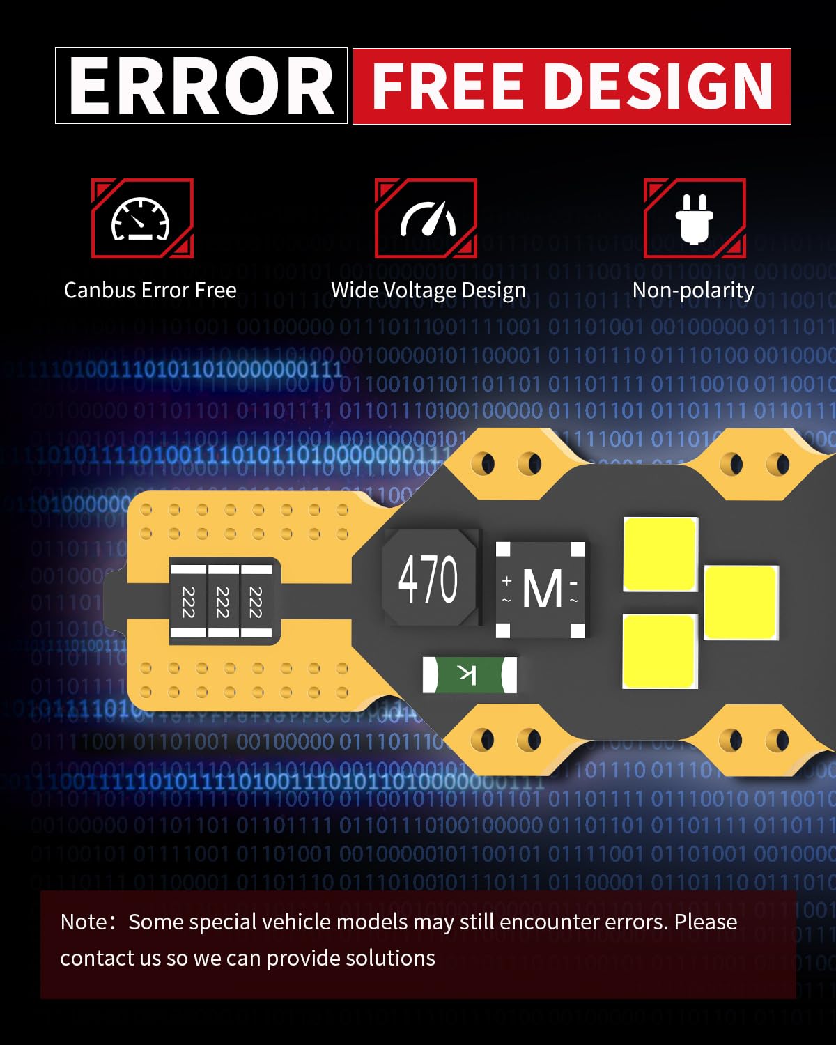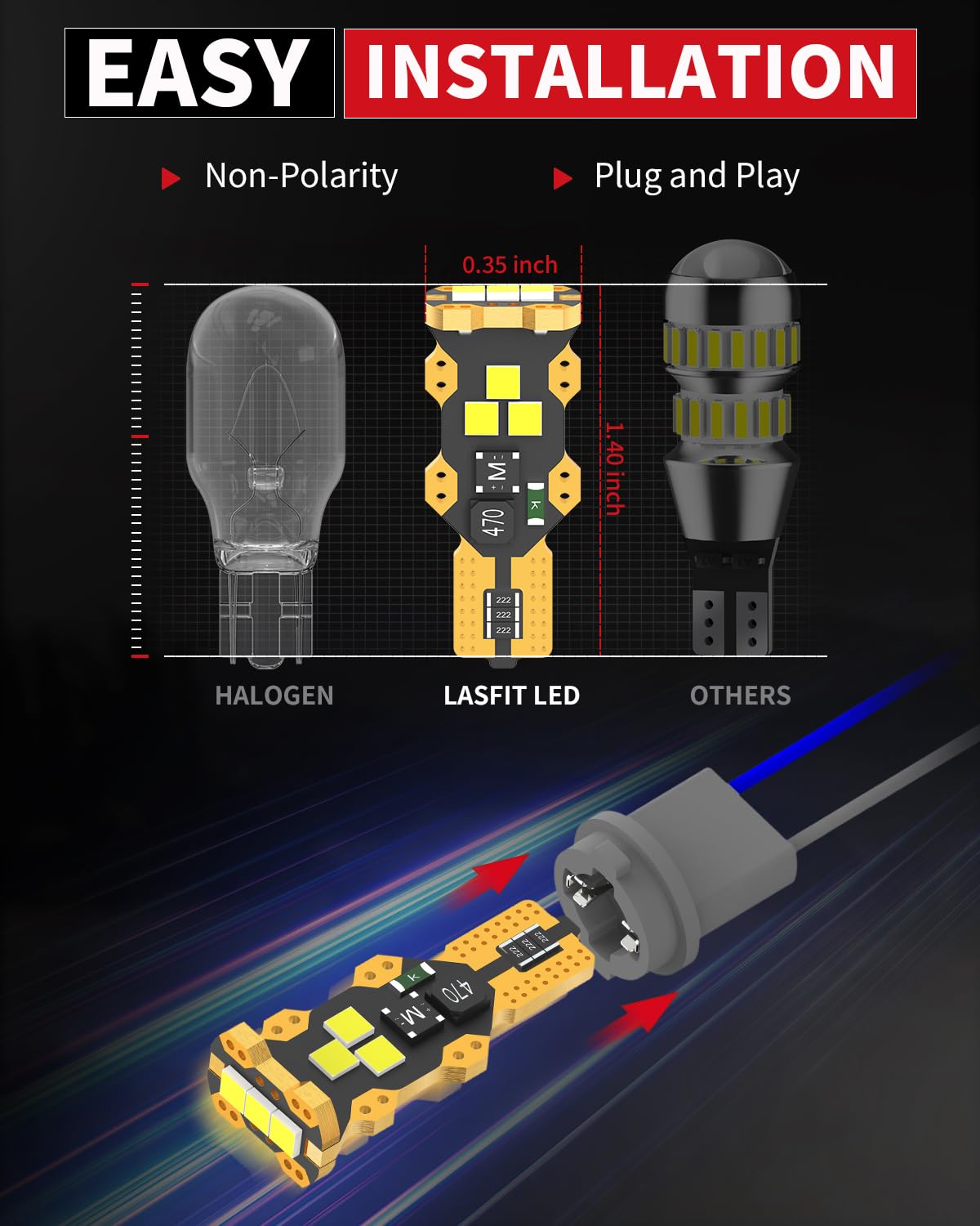 【CAN-BUS Ready】LASFIT 921 T15 led bulbs have built-in CANBUS system, compatible with 98% vehicles, preventing from error code, odd flickering, and radio interference. However, for some sensitive models of Audi/BMW/MB/Jeep/VW/Ram, they may still flicker or throw error code. If you have one of the above vehicle, please contact us to double check before purchasing.
