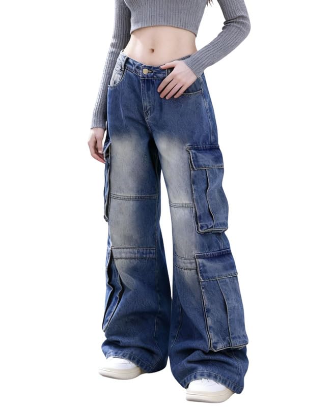 Material:Blue cargo jeans for women is made of 70%denim,30%other. Wear this baggy jeans to highlight your temperament(The size is relatively large. If it is between two sizes, please choose one smaller size)