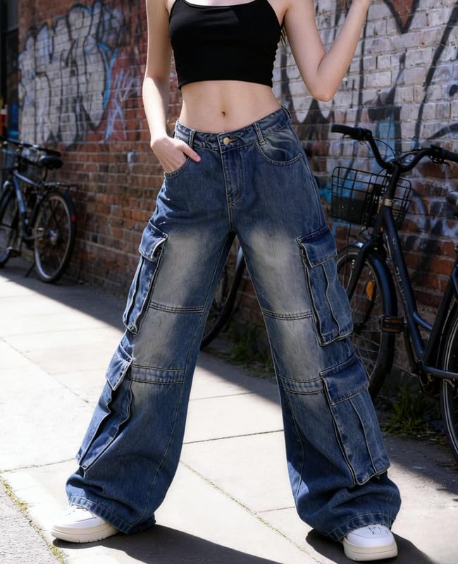 Design:Low waist,comfort stretch,casual wide Leg Jeans,wide leg baggy cargo jeans,vintage y2k jeans,multi-pocket,Streetwear