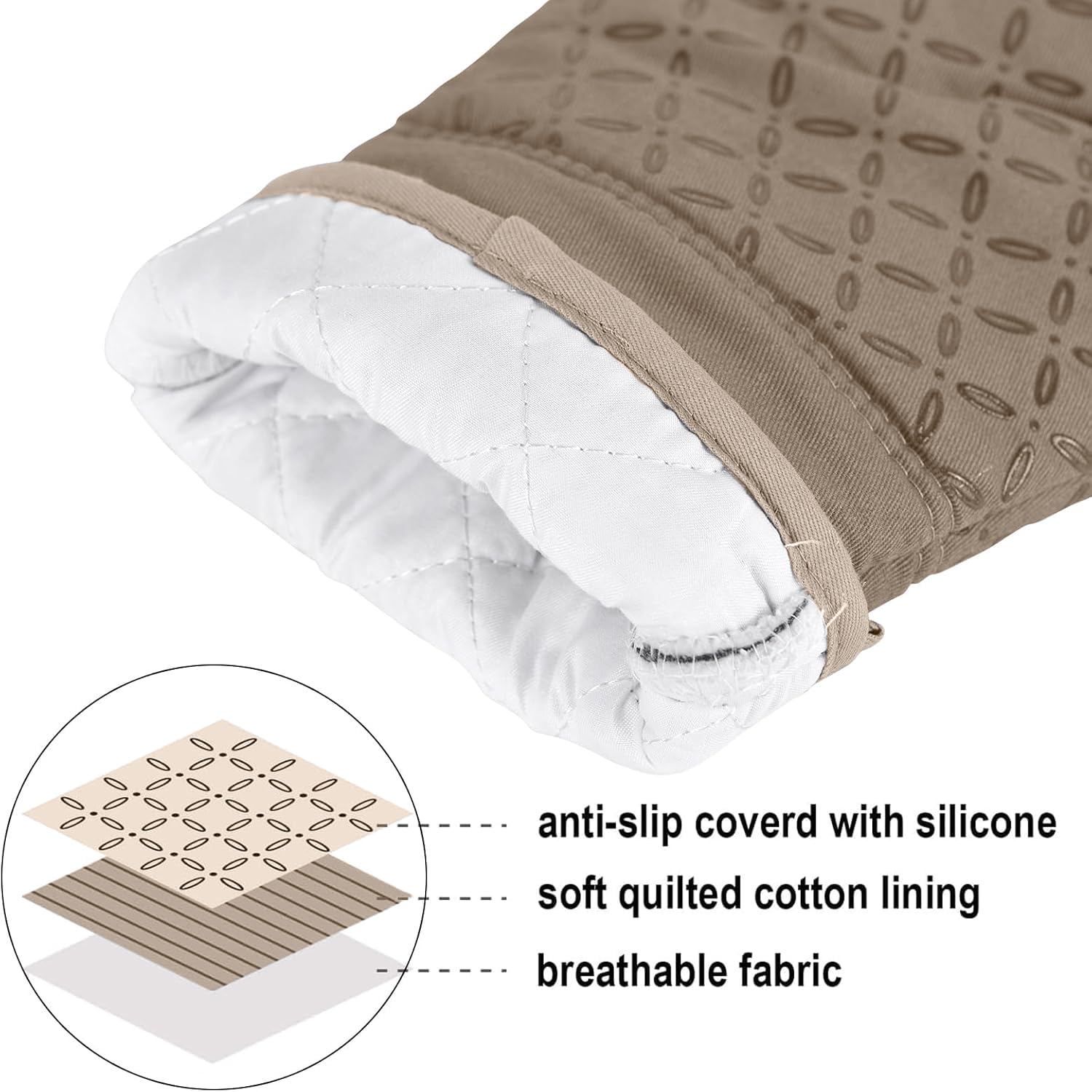 500°F HEAT RESISTANT &NON-SLIP: This oven mitts heat resistant 500 degrees because of the durable construction so it can effectively keep you protected from burning while you enjoy cooking and grilling. Enhanced with anti-slip silicone design to provide a more robust, non-slip grip that can be held securely when handling the kitchen utensils