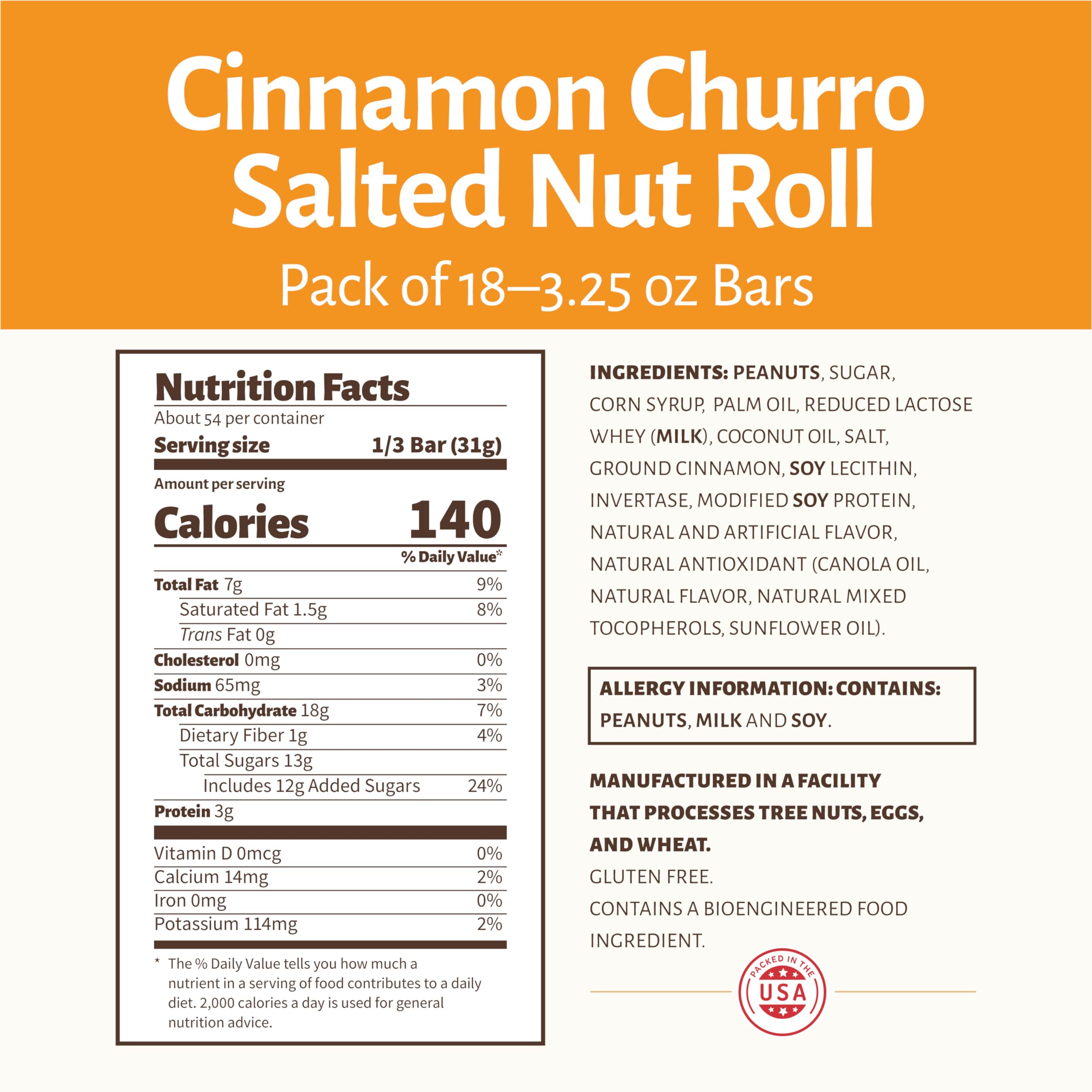 Eat One. Do More. Pearson's Cinnamon Churro Salted Nut Roll Candy Bars are peanut-packed with protein, 9 grams of protein in each bar, to help you power through your day.
