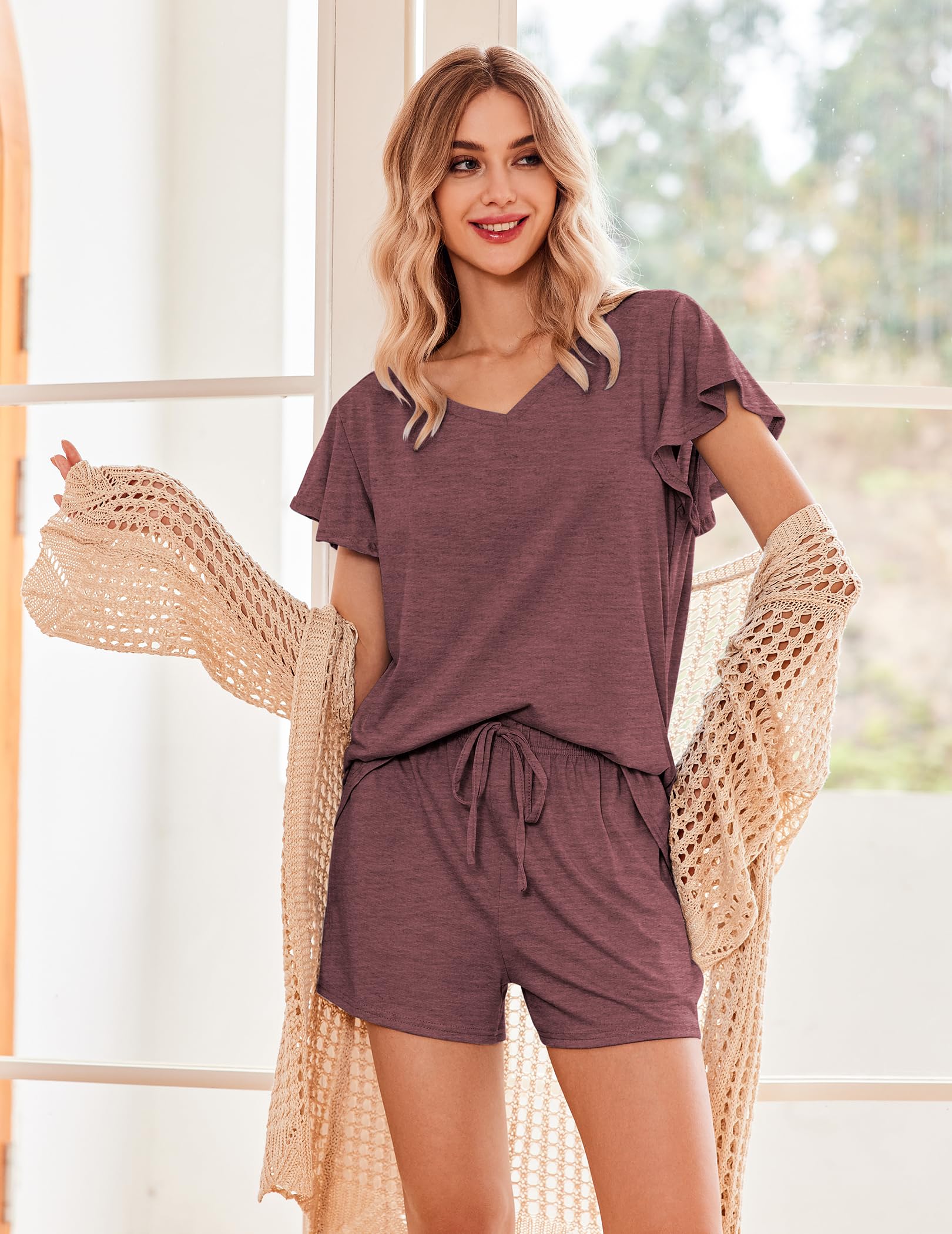BEST GIFT: Drift off to dreamland in this lightweight and soft PJs short set with a cute v-neck short-sleeved pajama top and bottoms, and enjoy a cozy time at home. This ruffle short-sleeved sleepwear set can be a good gift for your girlfriends, mom, and friends.