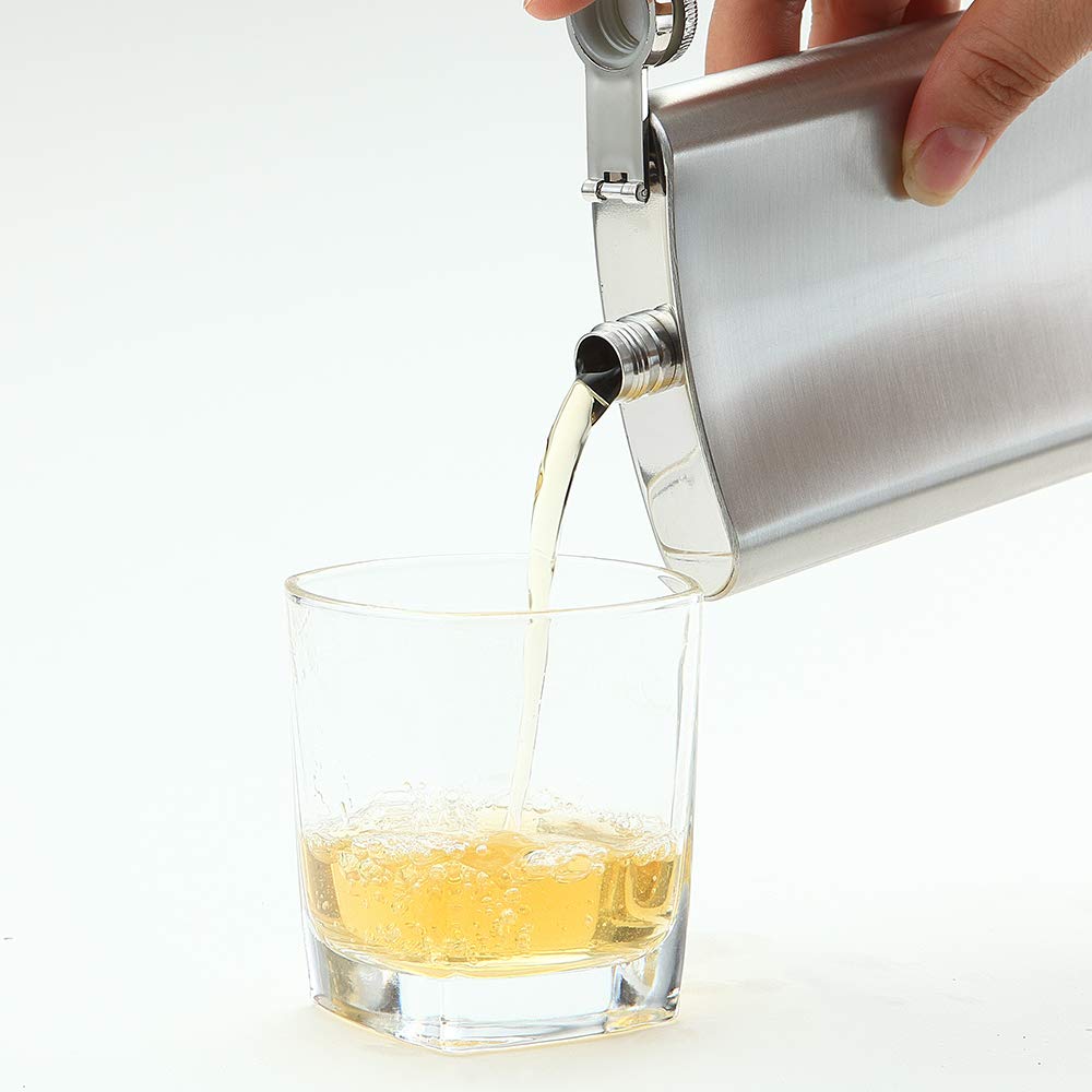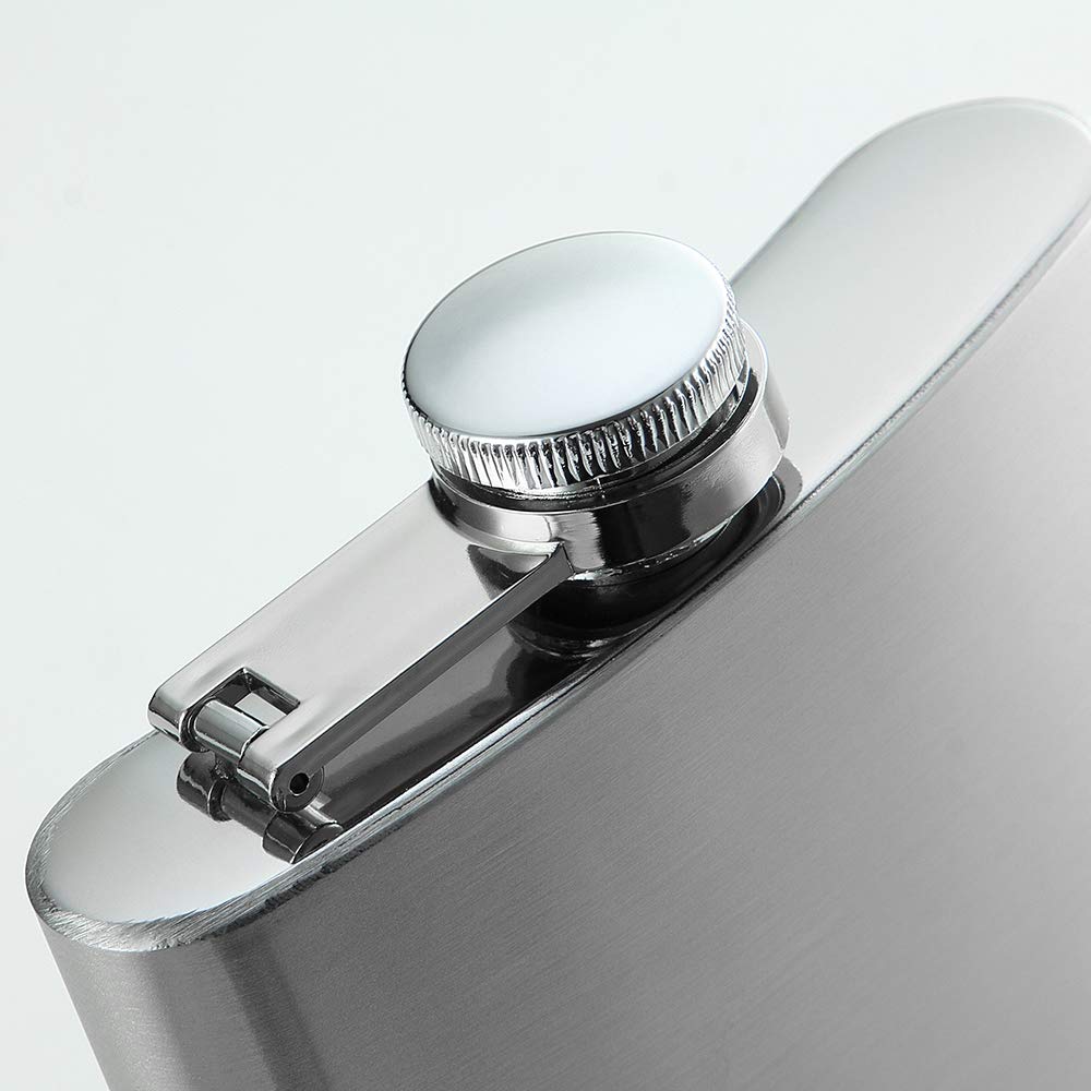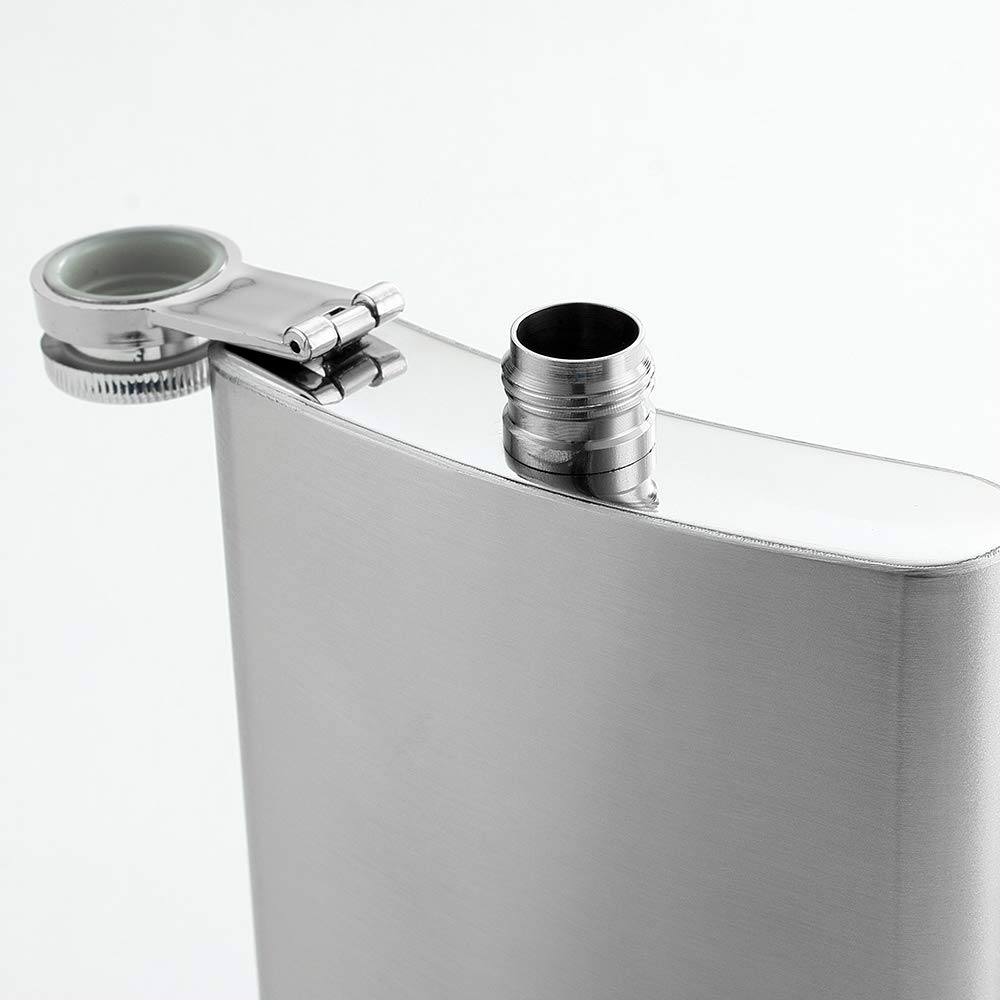 8oz Stainless Steel Flask and Funnel. Constructed of stainless steel with a unique durable laser welded hinge, Buy now and enhance your drinking experience. Comes with a FREE Easy Pour Funnel .