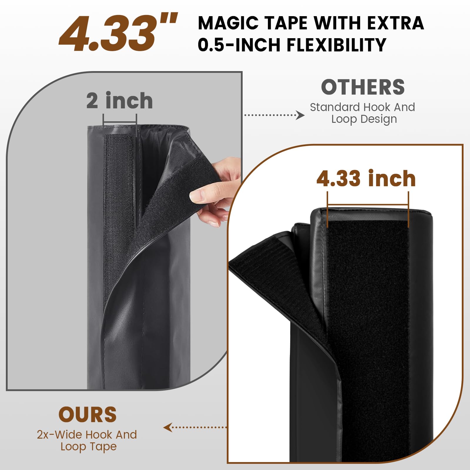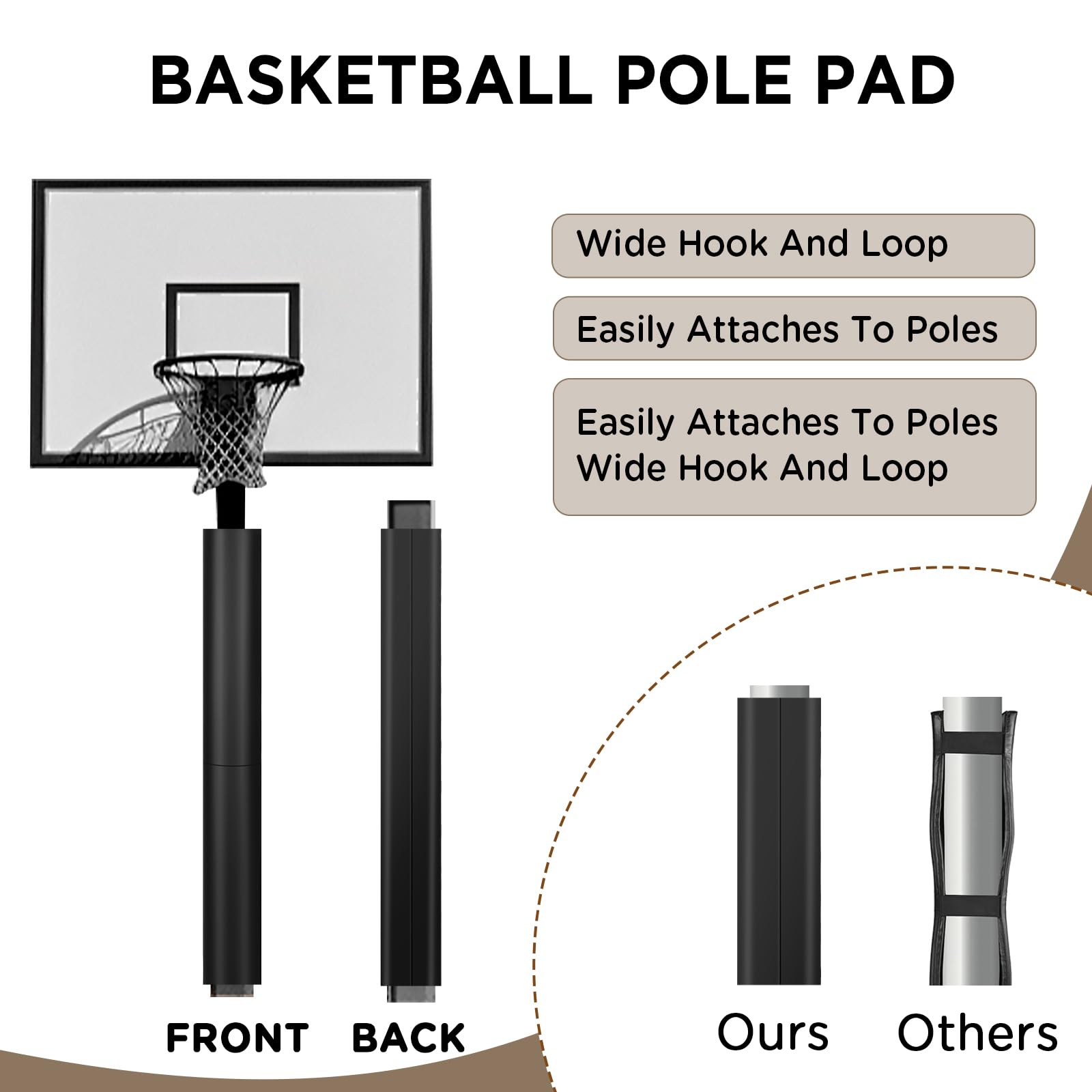 [4.33" Reinforced Straps] – Featuring wide 4.33" Hook-And-loop Straps with ±0.5" tolerance for flexible fitting on 2"-2.5" poles and 3"-3.5" poles. The basketball hoop pad's durable design maintains secure, slip-free positioning while accommodating minor size variations during installation.
