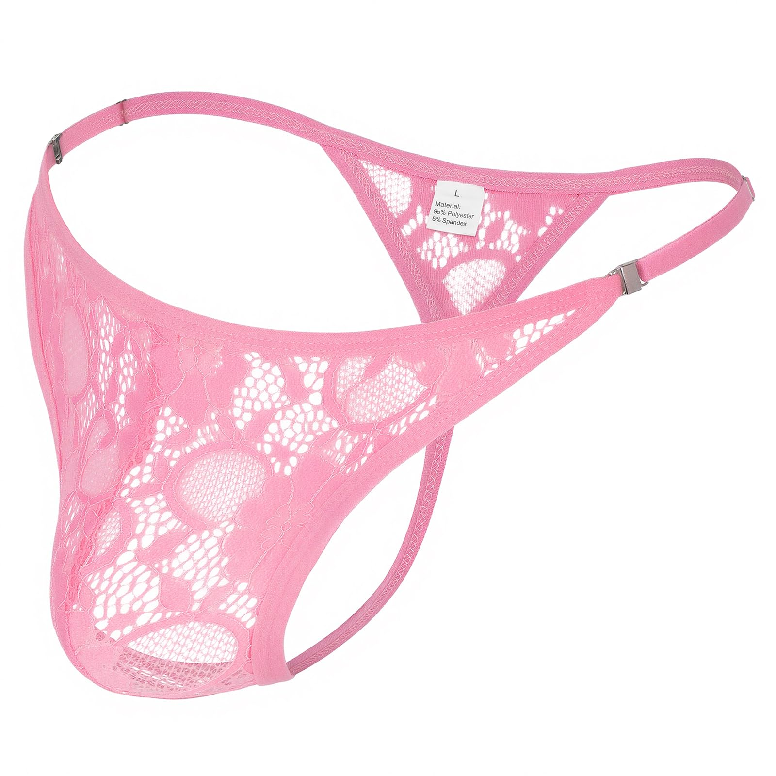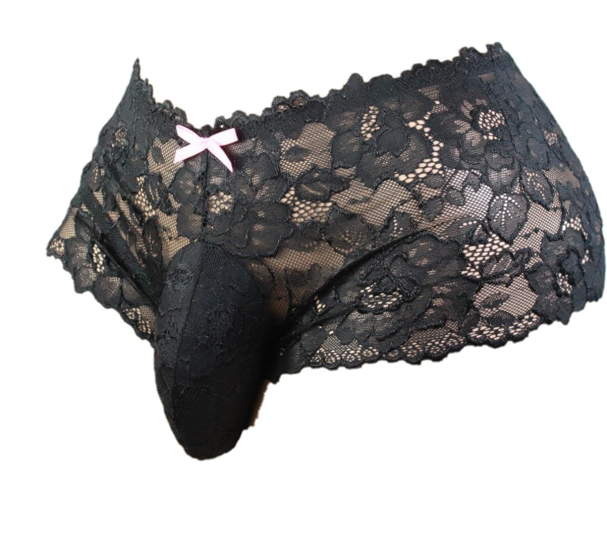 Men's sexy underwear low waist g-string lace floral sissy underwear, v shape lace waistband.