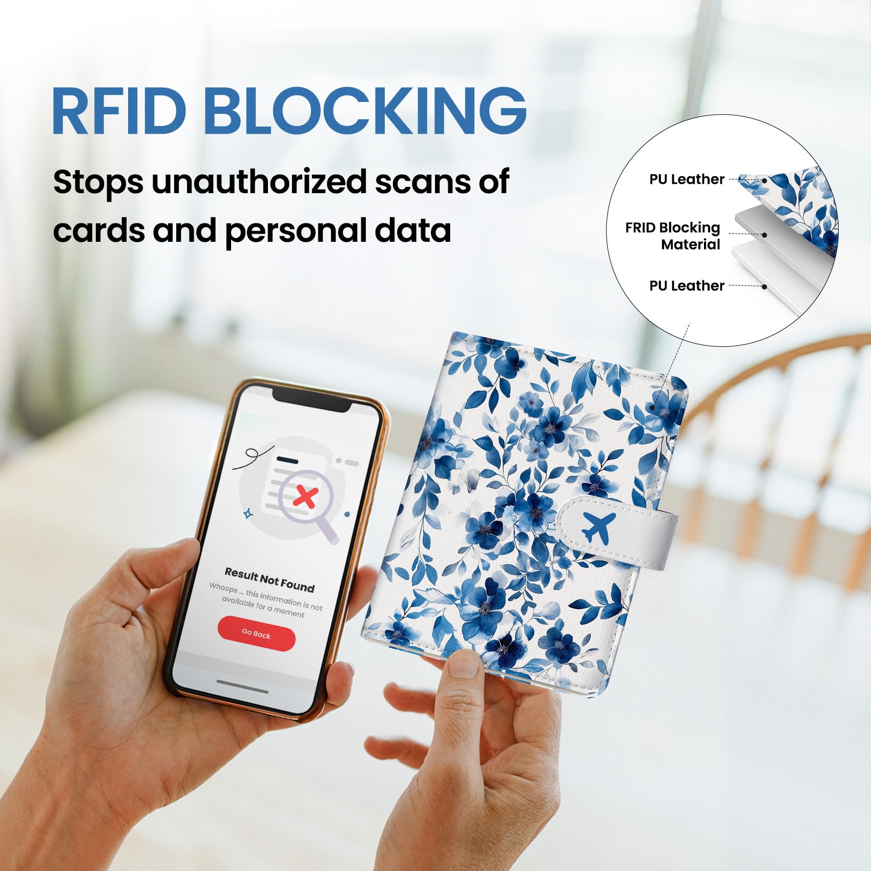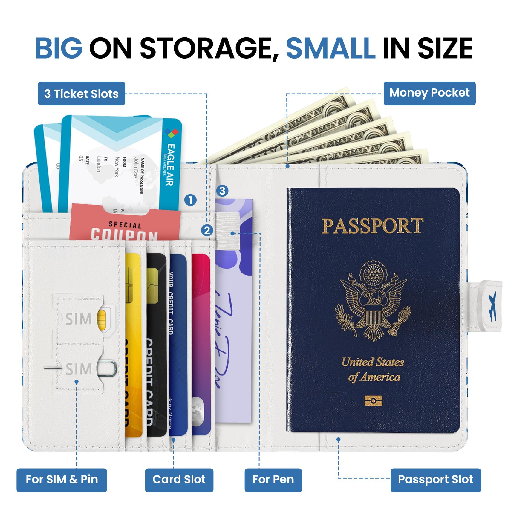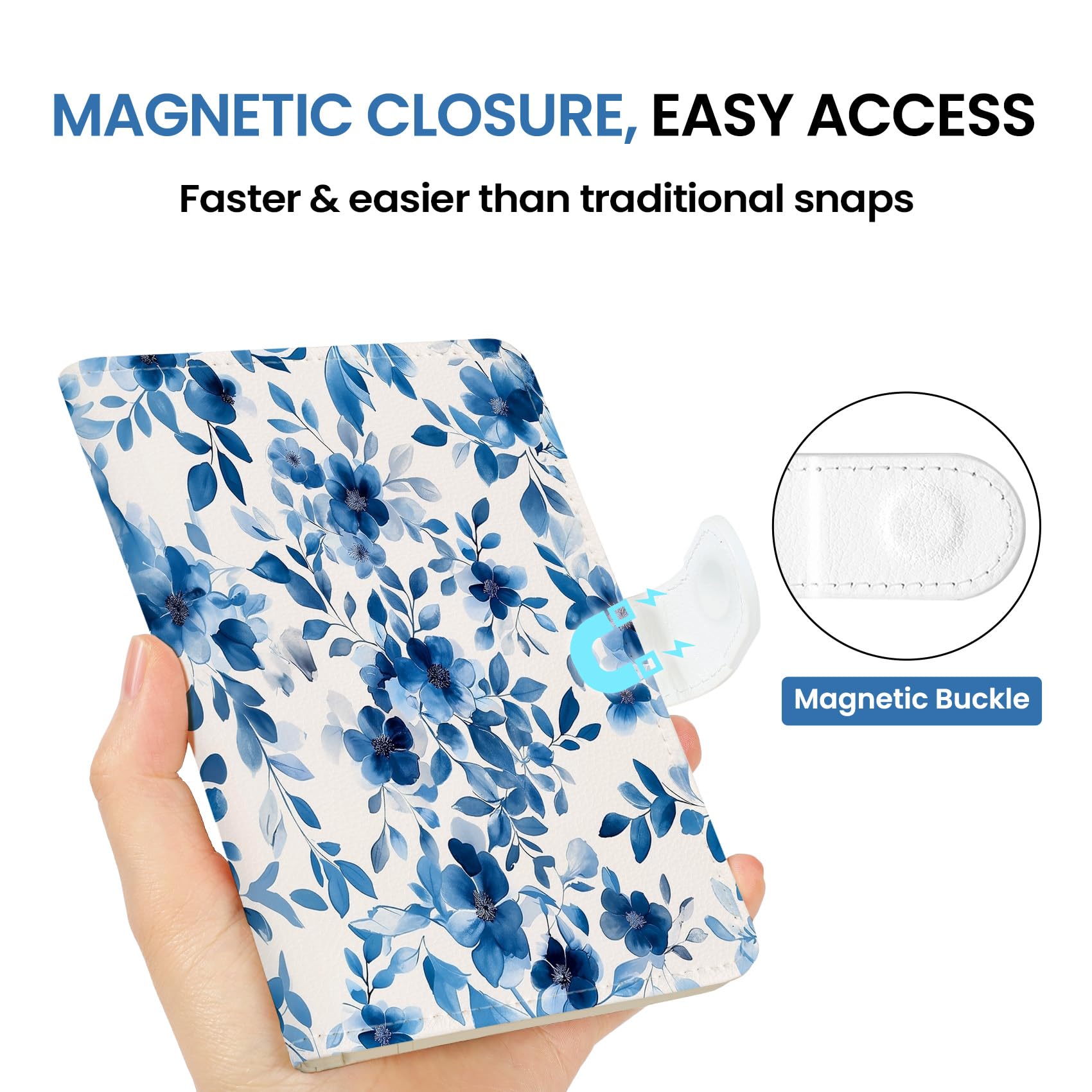 Instant Access & Magnetic Closure: Access your travel essentials in a snap. Our passport holder features a smooth magnetic closure for quick entry and secure storage - no more fumbling with zippers or snaps. Designed for effortless travel.