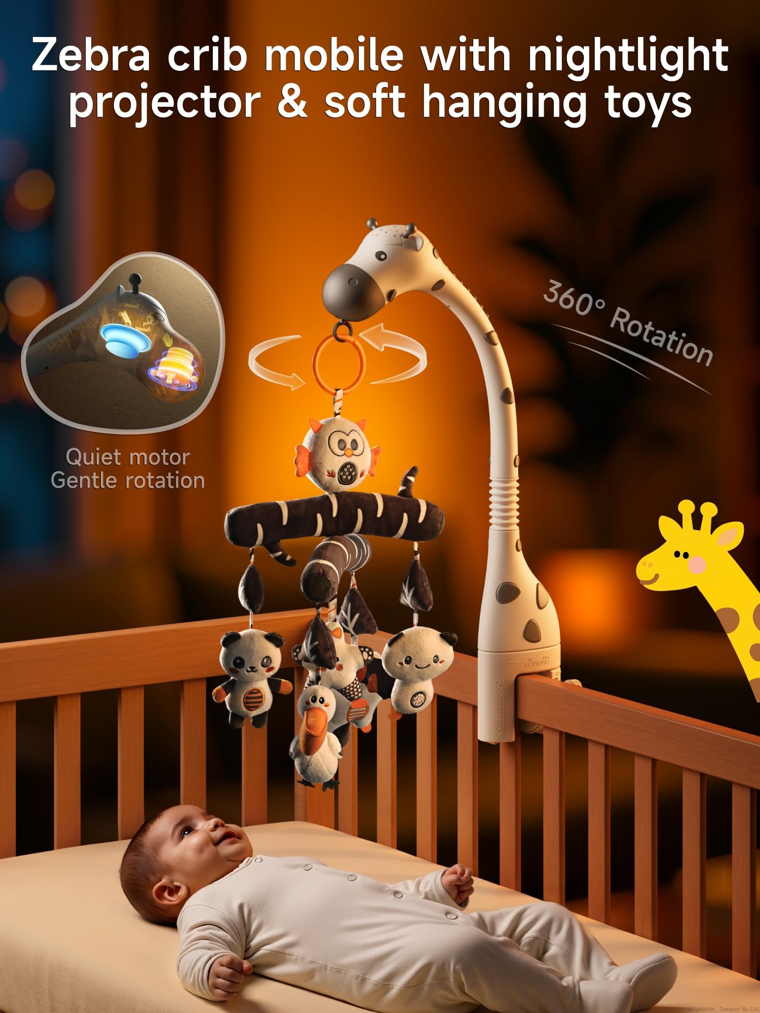 Grows with your baby - The adorable plush doll hanging toy with built-in squeeze toy can be removed and hung on your stroller or car seat when travelinga. When your baby grows up, the mobile can be removed and used as a stand-alone music box and star projector.