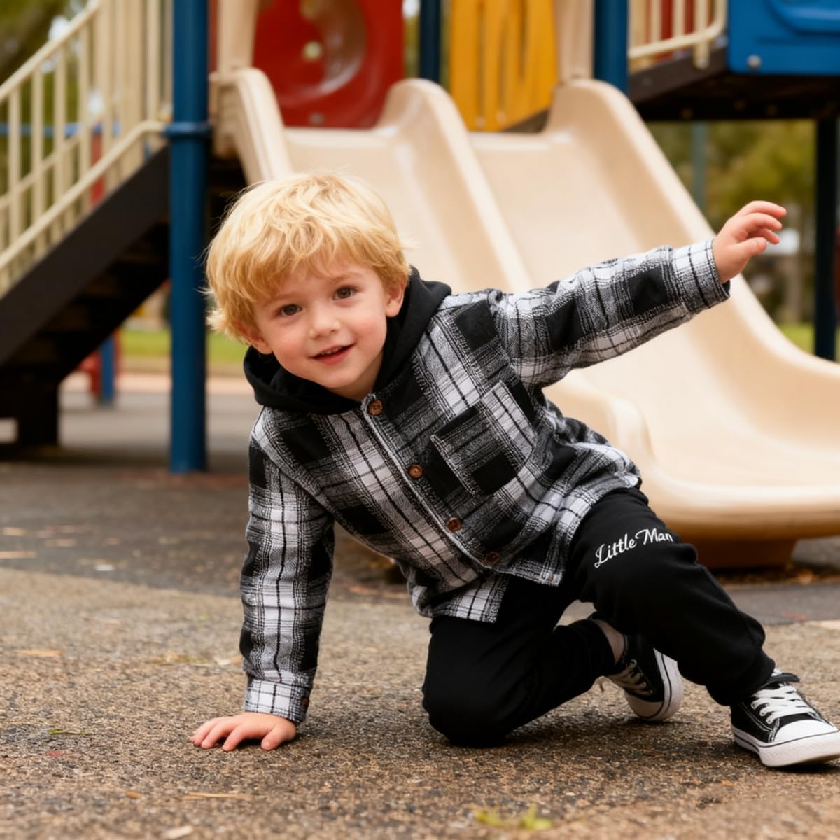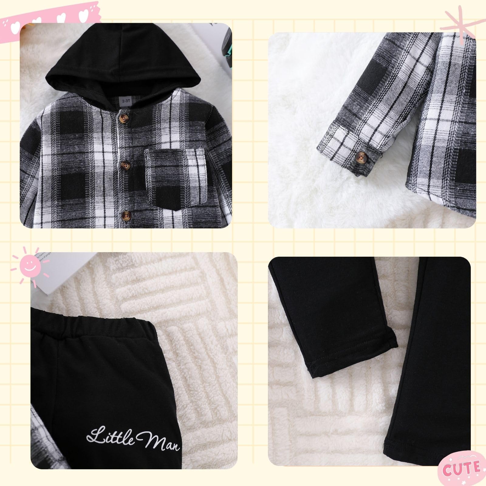 【Cute & Stylish Design】: Toddler Baby boy clothes set with classical plaid colorblock hoodie with quality button closure design, elastic waistband sweatpants match with letter printed , easy to put on / off. Fashion style will have your little boy up on the latest trends and he will get a lot of compliments.