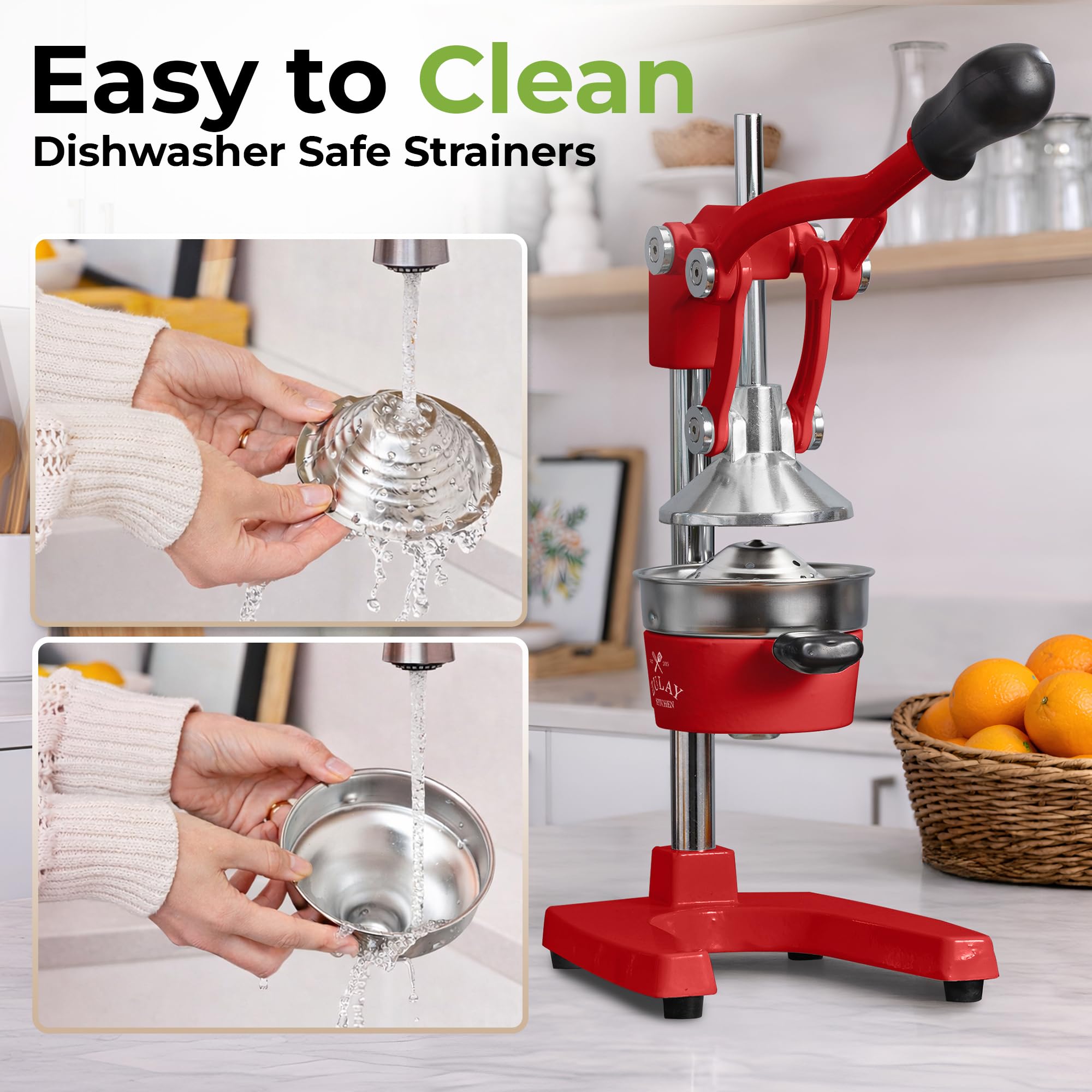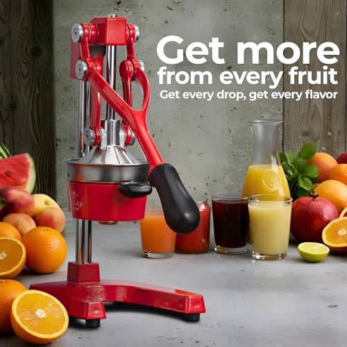 BUILT TO LAST A LIFETIME: Crafted from heavy-duty cast iron, this manual juicer is engineered to handle continuous, high-pressure use for years without wearing down. The smart leverage mechanism does the heavy lifting with a single pull, while the rubberized feet keep the press firmly planted on your counter — no slipping, no tipping, ever.
