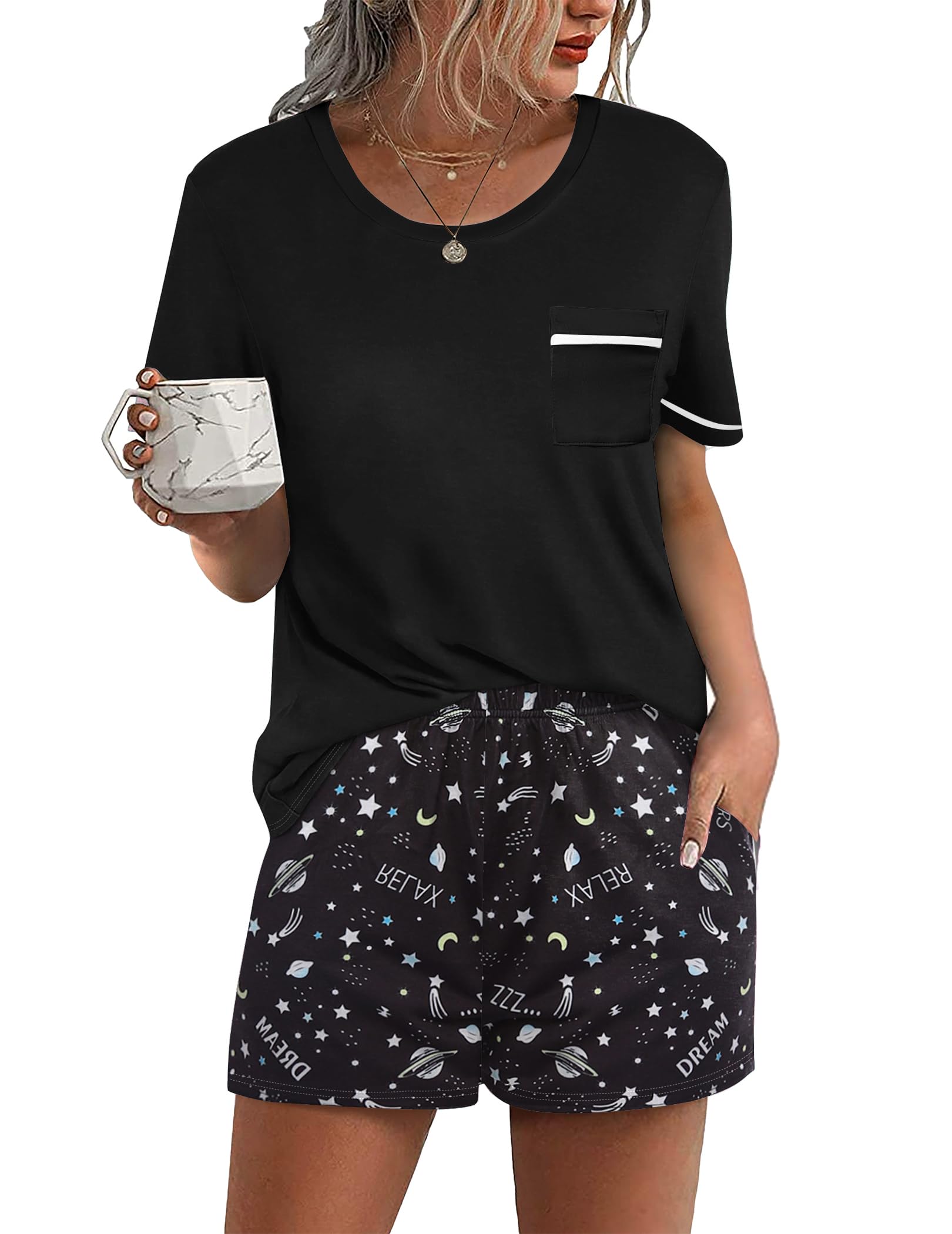 Design: The pajama top features classic chest pocket and V neck, with exquisite hemming workmanship; the pajama shorts features adjustable drawstring and pockets. Loose fit lounge sets, cute and comfy pajamas for women and teens girls