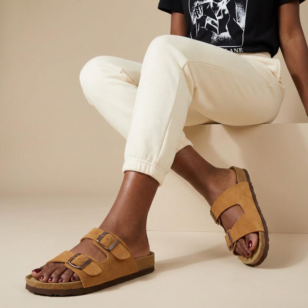 100% 𝗚𝗲𝗻𝘂𝗶𝗻𝗲 𝗦𝘂𝗲𝗱𝗲 𝗜𝗻𝘀𝗼𝗹𝗲𝘀 – Forms a perfect contour of the foot after being worn in, delivering superior comfort in these womens sandals for all-day wear. 𝗥𝘂𝗻𝘀 𝗦𝗺𝗮𝗹𝗹 For the best fit, go up half a size from your usual size.