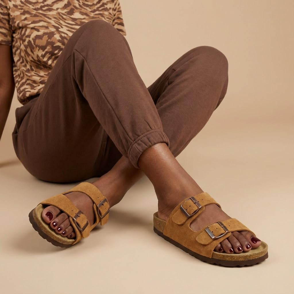 𝗙𝗹𝗲𝘅𝗶𝗯𝗹𝗲 𝗖𝗼𝗿𝗸 𝗙𝗼𝗼𝘁𝗯𝗲𝗱 – Experience superior flexibility with the lightweight cork footbed, allowing for natural movement in these womens sandals. Perfect for those who love flat sandals and need a comfortable option for everyday wear.