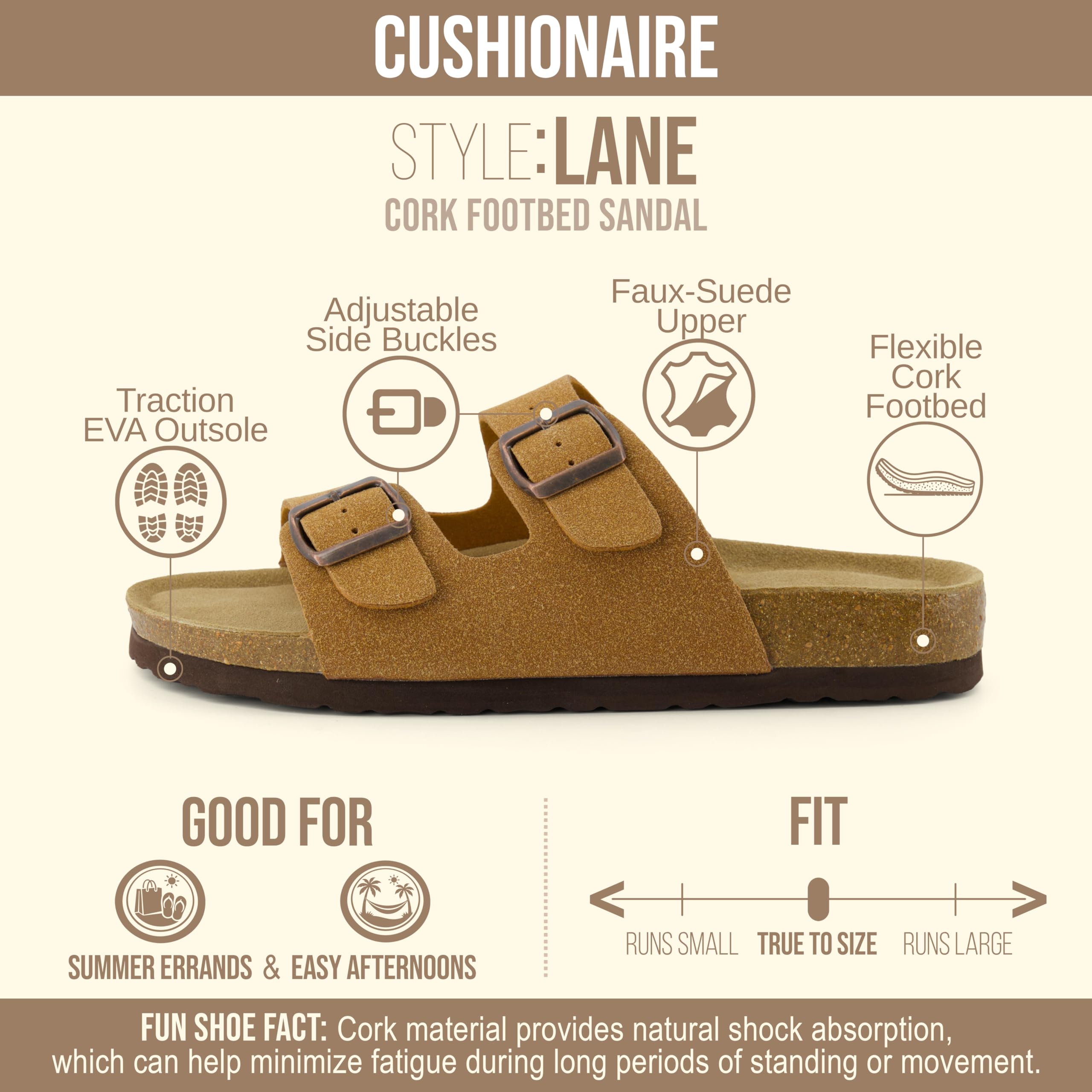 Description Women's Cushionaire comfort Cork footbed sandal. Stay cool with these high quality sandals that will give you comfort throughout your day.