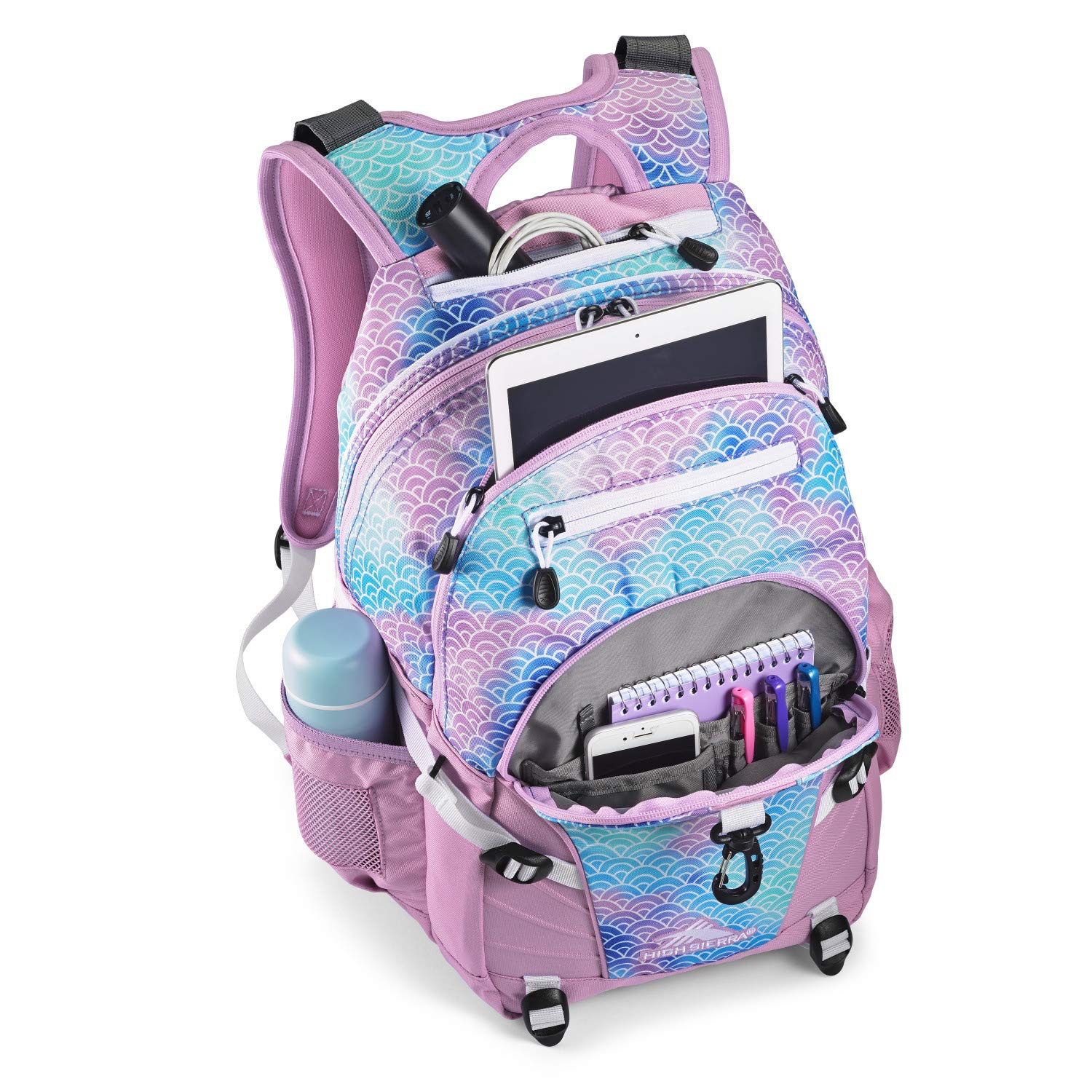 Description The versatile High Sierra Loop backpack is at home on and off the trail. The multi-compartment design keeps your gear organized. The side compression straps are adjustable to secure your items down and the adjustable bottom webbing straps are perfect for carrying items like a sleeping bag or tent. For days in the office, the Loop has storage for your tablet, phone and other personal digital gear. The multi-pocket organizer with key fob hook provides storage for all of your smaller items. Whether you are hiking a new trail or heading to class, the High Sierra Loop is the perfect travel companion.