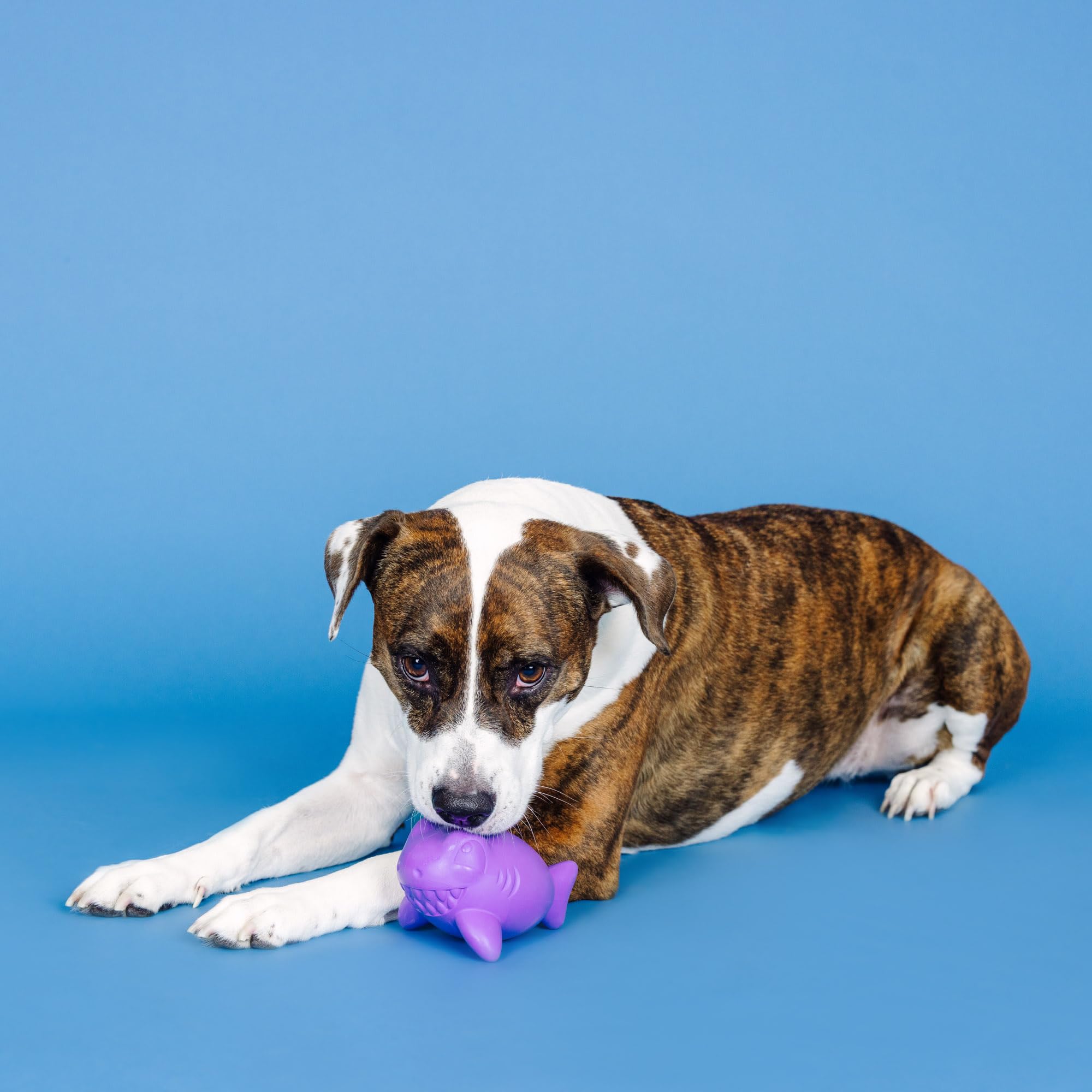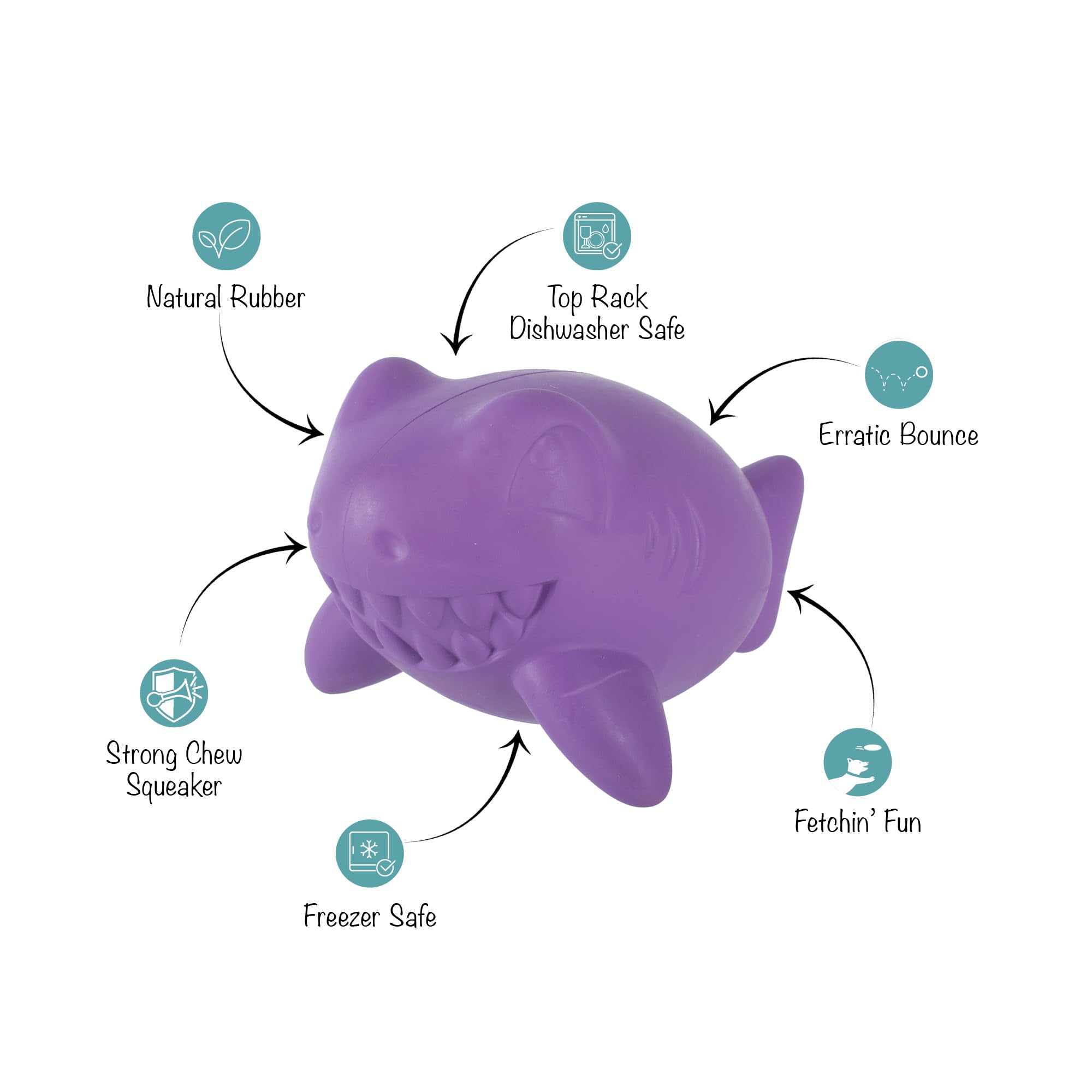 Ready to join the Dura Club? PetShop by Fringe Studio's "Catch Ya Later" purple rubber dog toy is for pups that love to chew and play lots of fetch. Made with natural rubber, a strong-chew squeaker, and an erratic bounce, this toy was created for long-lasting interactive play. With so many fetchin' fun features, your pup will really take the bait with this one. Great for all-sized dogs and strong chewers.