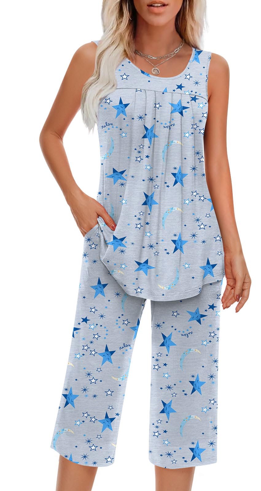 Occasion: This lightweight and comfortable women's summer sleeveless set can be used in various occasions. You can wear it as home clothes to sleep or cook; You can also wear it to go out for a dog walk or morning run, of course, this is also a good set for doing yoga exercises