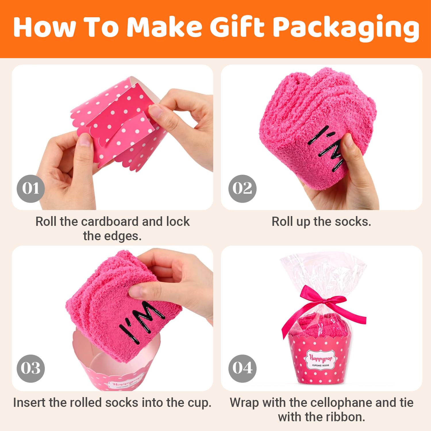 CUPCAKE PACKAGING: We provide an exquisite gift box and a paper belt with each pair. With just a minute of your time, you can enjoy the fun of making a gift box that looks like a lovely cupcake.