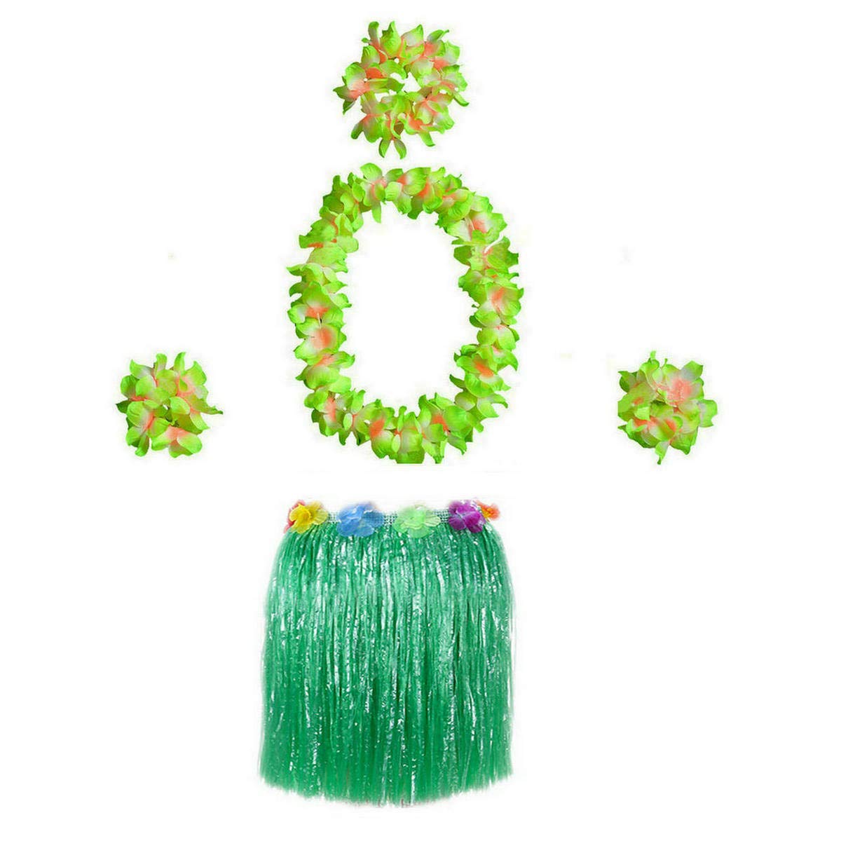 Description Awesome costume for adults or kids! Perfect for the Hawaiian Luau golf tournament you will be in. Can used for a Hawaiian luau themed party and beach theme or anything summery. This lightweight, cool and sexy grass skirt with bright color makes you become the centre of attention and look more attractive, energetic, can arouse members' interest and enthusiasm to join with you in party. Come to wear it and dance with music, you will get more fun and be the focus of everyone's attention. Specification Material: Plastic fiber for skirt, cloth for flowers Headband: 20 inch,can stretch 39 inch Bracelet and anklets: 8 inch, 16 inch stretchable Necklace: 39 inch,no stretch 16" Skirt(for kids): Waistband extent 22 inch to 38 inch; skirt length 16 inch 24" Skirt: Waistband extent 24 inch to 40 inch; skirt length 24 inch 32" Skirt(for adults): Waistband extent 27 inch to 47 inch; skirt length 32 inch Range of Application: Luaus, Festive occasions, Beach Parties, Halloween, Christmas, Parent-child Theme Party, Tropical Theme Party Packaging:1*grass skirt+1*head ring+1*neck ring+2*bracelets