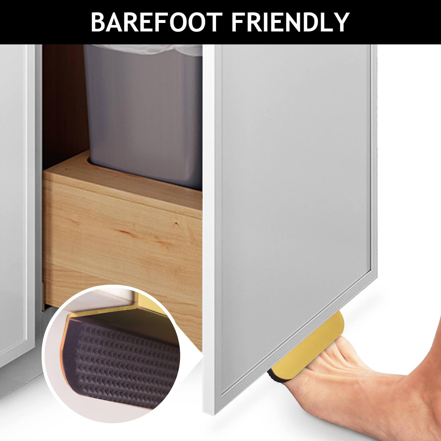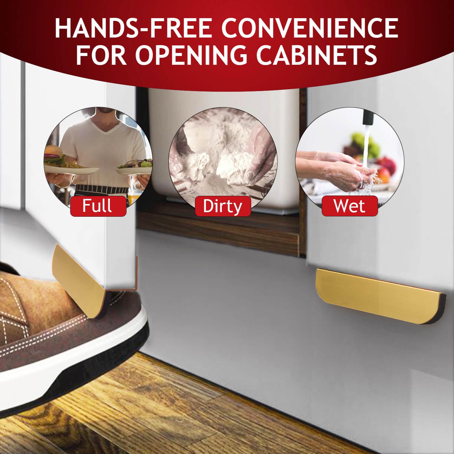 HANDS-FREE PATENTED DESIGN - This toe foot pull opens cabinet doors and drawers with the front of your toe. Simply slip your toe under the pull, lift, and open. Perfect for trash cans in cabinetsβdispose of trash without touching the cabinet handle. It's also great when your hands are full and you need to access the cabinet quickly!