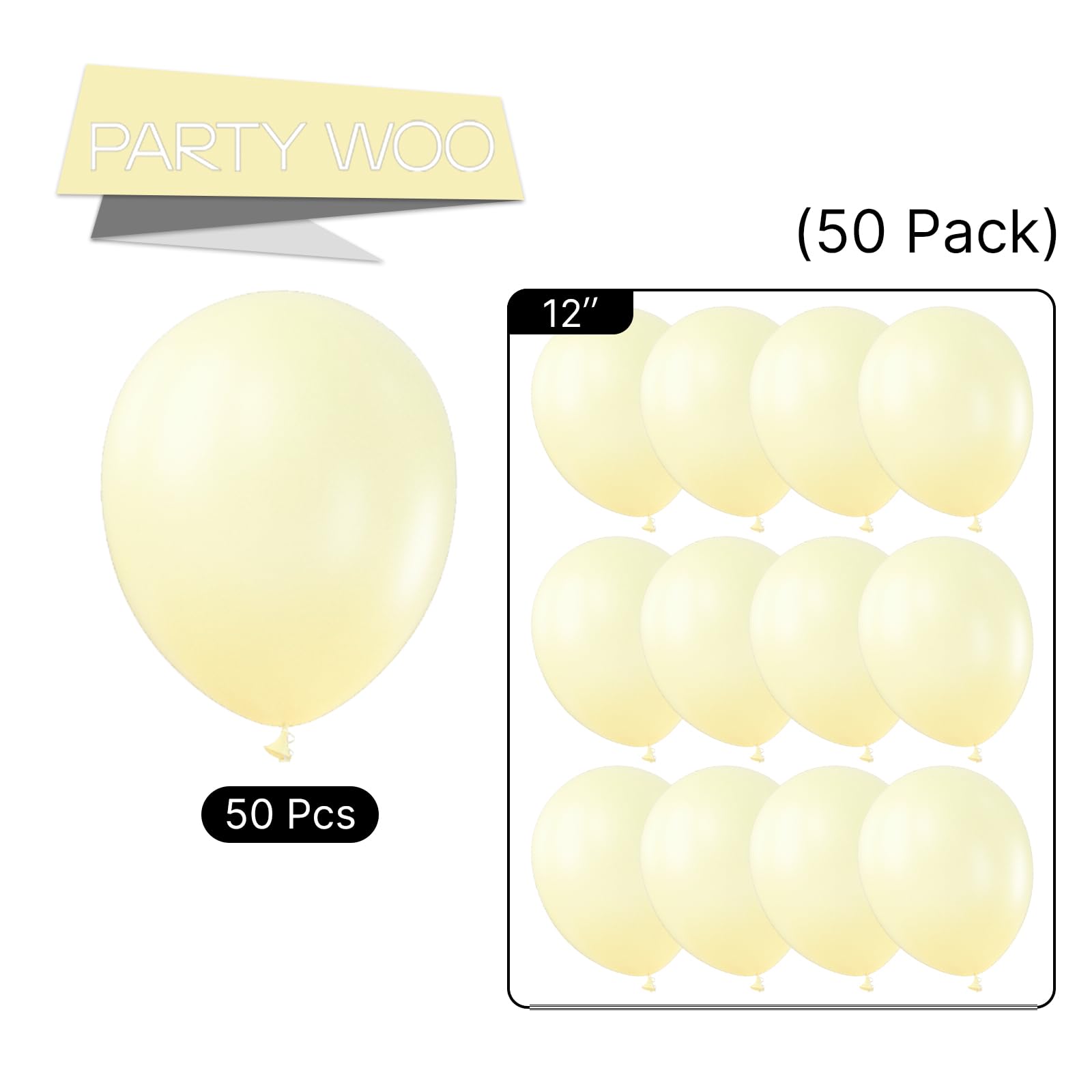 Package includes 12 inch pastel yellow balloons (50 pcs), ideal balloons for birthday decorations, wedding decorations, baby shower decorations, party decorations