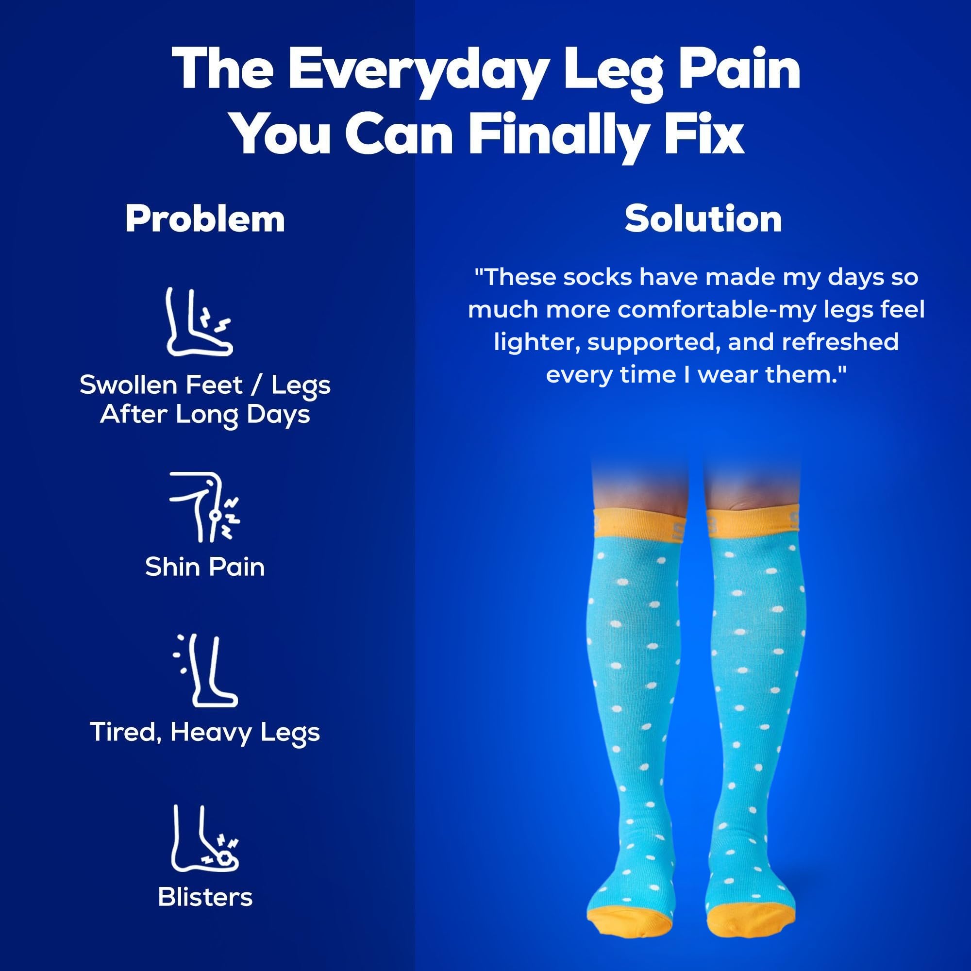 Decrease Swelling and Fatigue: Our graduated compression socks provide the ideal compression to improve blood flow to relieve swelling and fatigue in your feet and legs. Great for any activity!