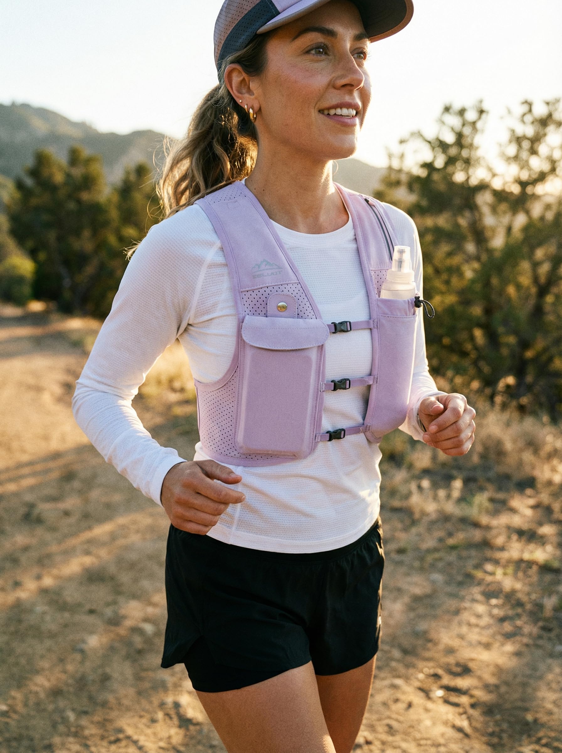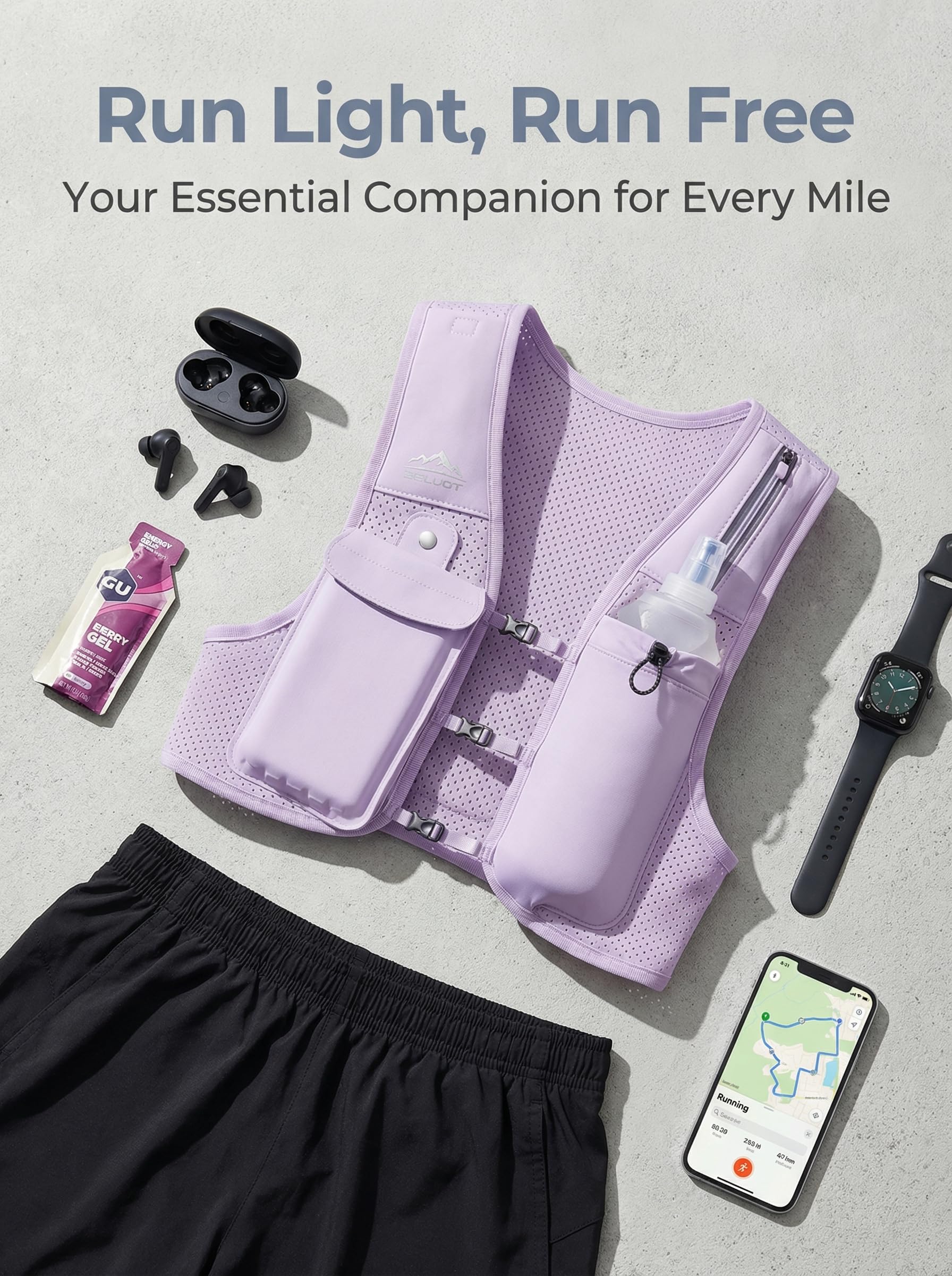 Hydrate on the Run - The running hydration vest comes with a 500ml soft flask that's 100% free from BPA and PVC. Softly bite to drink directly—hands-free hydration without interrupting your pace. Our running water bottle is uniquely crafted to shrink as you drink, combined with the drawstring tightening to ensure the water bottle doesn't slosh around, bounce or rattle. Quick-access water, secure storage, and a chafe-reducing fit for training runs, race day, and every mile in between