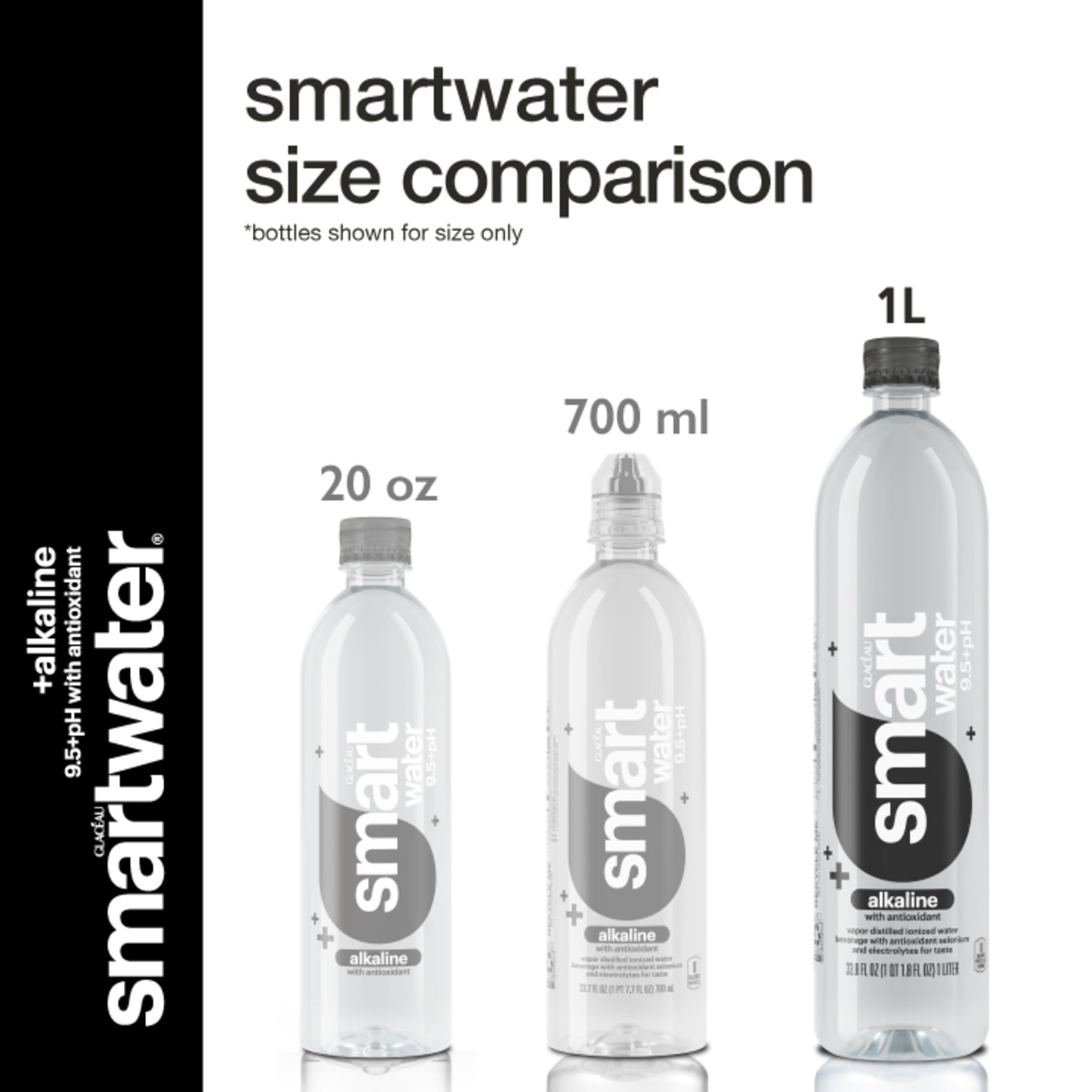 elevate how you hydrate with the new smartwater alkaline with antioxidant! smartwater continues to keep it smart by bringing you hydration that’s ready for action. smartwater alkaline with antioxidant is everything you love about vapor-distilled smartwater but made to fit your active lifestyle with ionized 9.5+ph and added antioxidant from selenium. it’s crisp, clean taste is perfect for when you’re staying hydrated on the go, getting a strong workout in, or rehydrating before bed. hydrate with what you need – nothing more, nothing less. smartwater alkaline with antioxidant for your active health hydration. find smartwater alkaline with antioxidant at your favorite stores next to the other smartwater products. look for the black cap, smartwater drop, “+” signs on the front of our iconic bottles, now in a variety of sizes to better meet your needs (1l, 1.5l, 700ml sport caps, 20 oz, and in 1l multipack). collect them all in addition to our classic blue drop bottles and smartwater flavors.